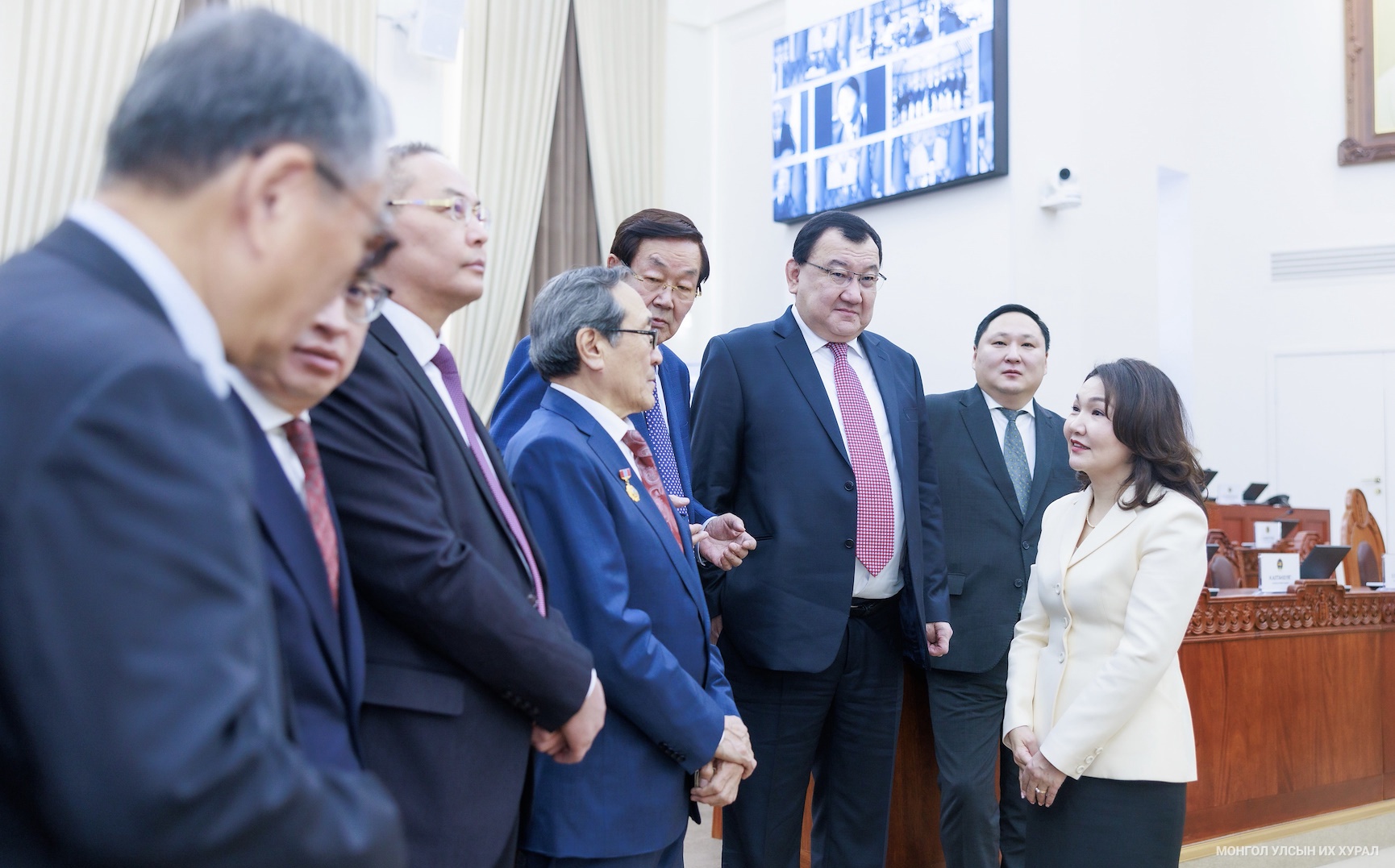 “Монгол Улсын Үндсэн хуулийн өдөр”-ийг тохиолдуулан Улсын Их Хурлын дарга Н.Учрал өнөөдөр (2026.01.12) үе үеийн парламентыг удирдан чиглүүлж байсан Улсын Их Хурлын дарга нар болон Улсын Их Хурлын Ерөнхий нарийн бичгийн даргаар ажиллаж байсан төрийн зүтгэлтнүүдэд хүндэтгэл үзүүлж, уулзалт зохион байгуулав.