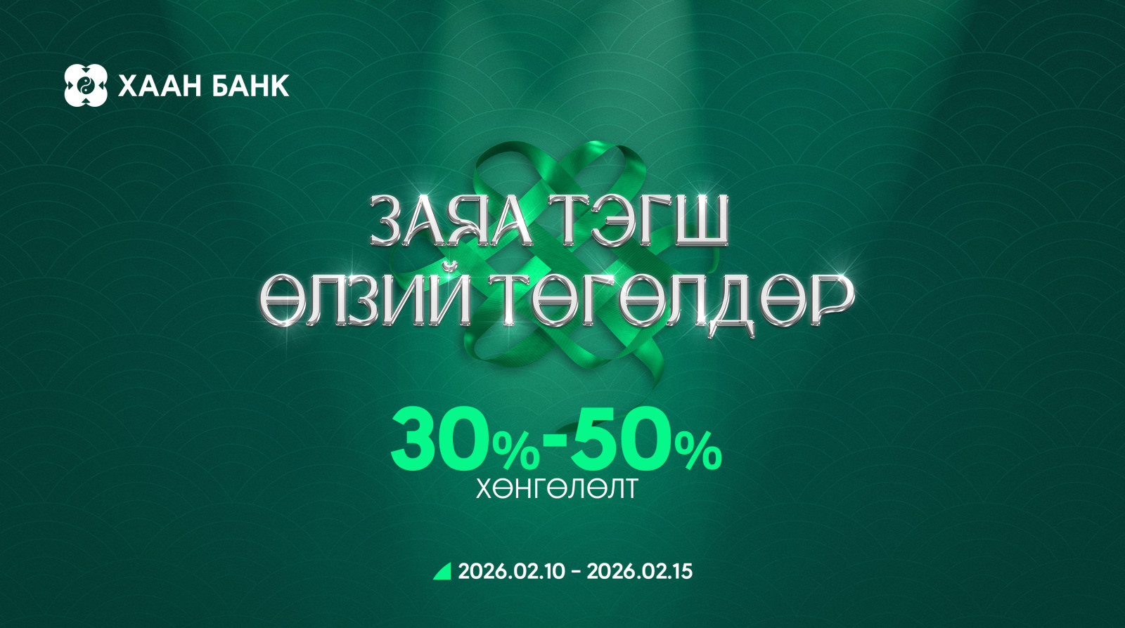 Тодруулбал, 2026 оны 2-р сарын 10-15-ны өдрийг дуустал ХААН Банкны Priority, Signature дебит карт болон бүх төрлийн кредит карт эзэмшигчид сонгогдсон байгууллагуудаар үйлчлүүлэхдээ 30–50 хүртэл хувийн хөнгөлөлт эдлэх боломжтой.