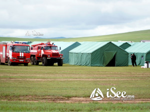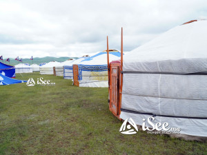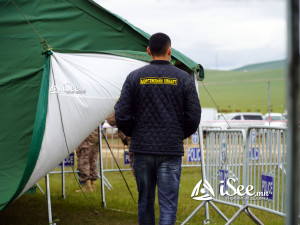 Шинжилгээний хариуг 20 минут хүлээсний эцэст цааш явах эрхтэй болно. Сөрөг хэмээн хариу авсан хүмүүс наадмын ажилчдыг зөөвөрлөх үүрэгтэй жижиг автобусаар цааш явж наадмын контентыг хийх тайз бүхий асар, гэрүүд рүү очно.Баруунхан талд нь цагдаа, онцгой байдлын алба хаагчдын байрлах хээрийн зориулалт бүхий 30 асар майхан, био 00 зэрэг харагдана. Наадмыг хийх төв цэгт очмогч марал бугын сийлбэр бүхий хаалга угтан авч урд зүгт харвал тайз харагдах аж. Тайзны чанх хойд талд “Их хааны өргөө гэр”-ийг байрлуулж үүдэнд нь манах хүрэл арслангуудыг будаж байв. Тайзны баруун, зүүн талд албан байгууллага болон аймгуудын төлөөллөөс бэлэглэсэн асар наадмын зохиомжид хэрэглэгдэх жижиг гэрүүдийн цуг эгнэнэ. Харин өчигдөр /2021.07.01/ УОК-ийн мэдээллийн үеэр Улсын баяр наадам хойшилсон тохиолдолд эдгээр гэр өргөөнүүдийг буулгана гэж мэдэгдсэн юм.