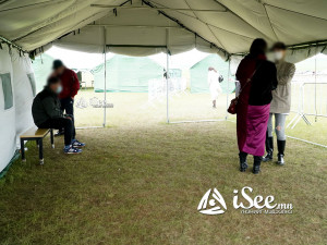 Учир нь энд ирсэн хүн бүр эхлээд ногоон асарт орж коронавирус илрүүлэх түргэвчилсэн тест өгөх ёстой аж.