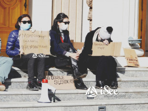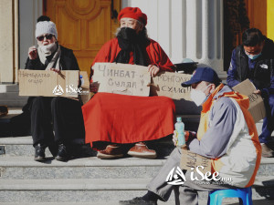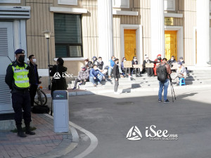 Иймд н.Монголхүү, Э.Одбаяр нарыг суллах, мөн ХЗДХ-ийн сайд Х.Нямбаатар огцрохыг шаардаж буй тус яамны гадна иргэд суулт хийж байгаа юм. Харин тэдний ойр орчимд олон тооны цагдаагийн алба хаагчдыг эргүүлд гарч, тэднийг тойрч зогссон байв.