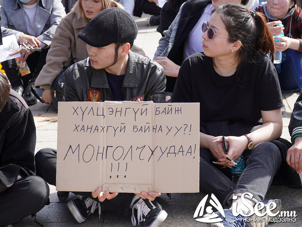Тус жагсаалд 20-30 насны залуус нэгджээ. Тэд “Засгийн газар өөрсдөө хэмнэе, Хөгжлийн банкны зээлээ төл, Хэт үнийн өсөлтөө зогсоо, Ажлаа хий” гэсэн уриалгыг дэвшүүлээд байна. Одоогийн байдлаар ямар нэгэн албаны байгууллагад шаардлага хүргүүлээгүй, жагсаалыг толгойлсон хүн байхгүй өөрсдийн хүсэлтээр жагсаж байна гэдгээ илэрхийллээ. Мөн тус залуустай зэрэгцэн Б.Жагар тэргүүтэй хүмүүс Хөгжлийн банкны зээлийг төлүүлэхийг шаардаж жагссан ч улс төрийн зорилготой гэж хардан хөөж явуулжээ.