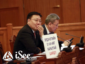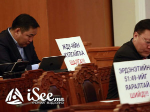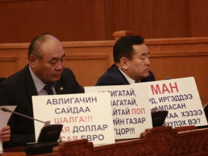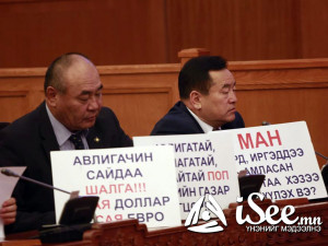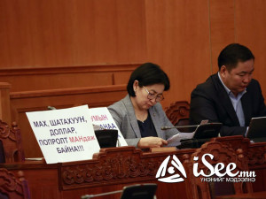Яг одоо УИХ-ын чуулганы нэгдсэн хуралдаан болж байна. Харин чуулганы танхимд УИХ дахь АН-ын зөвлөлийн гишүүд лоозон байршуулан суусан байна. Уг лоозонгоор “Авлигачин сайдаа шалга”, “Засгийн газар огцор”, “МАН амласан амлалтаа биелүүл”, “Мах шатахуун долларын үнэ хаданд гарч байна”, “Эрдэнэтийн 51:49 хувийн асуудлыг хурдан шийд” гэх агуулгыг илэрхийлжээ.