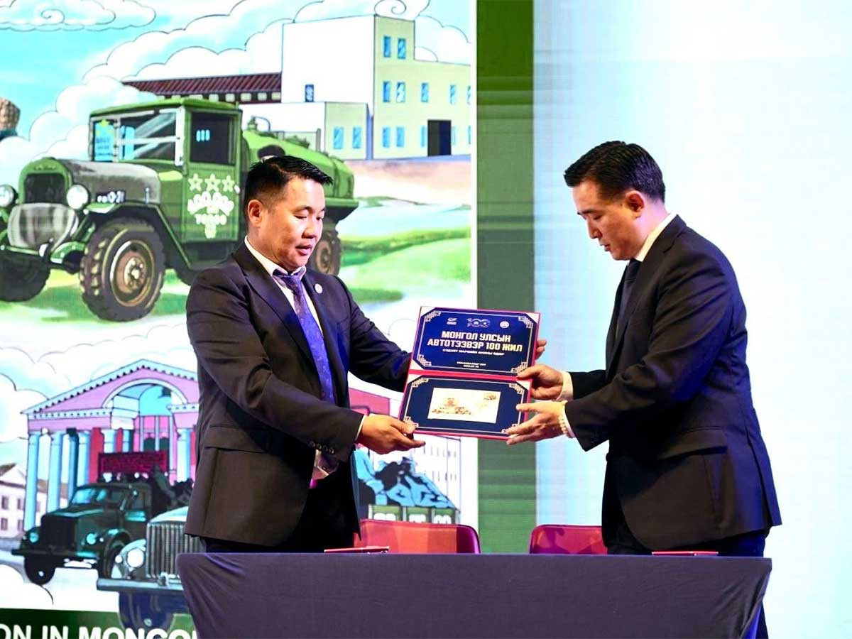 Монгол Улсад Автотээврийн салбар үүсэж хөгжсөний 100 жилийн ойд зориулан "Монгол Улсын Автотээвэр 100 жил" сэдэвт маркийг бүтээлээ.