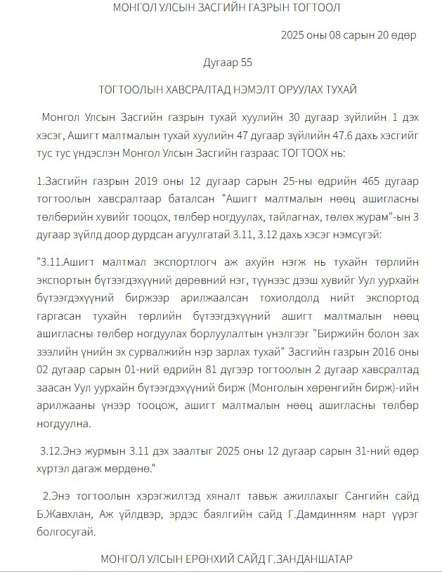 Үүнийг нотолж, "УИХ-ын гишүүдтэй нэг, нэгээр нь уулзаж Засгийн газрыг огцруулах асуудлаар саналыг нь сонсож байгаа" талаар УИХ-ын гишүүн Н.Номтойбаяр ярьсан юм. Ингээд МАН-ын талцал хуваагдал бүр гүнзгийрч "Ерөнхий сайд Г.Занданшатарыг огцруулах" бичгийг УИХ-ын гишүүн П.Сайнзоригийн албан бланк дээр гаргаж, 40 гаруй гишүүн гарын үсэг зурсныг өнөөдөр /2025.10.06/ УИХ-д өргөн барина гэх мэдээллийг өчигдөр /2025.19.05/ зарим хэвлэлүүд нийтэлсэн.