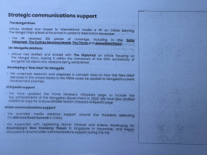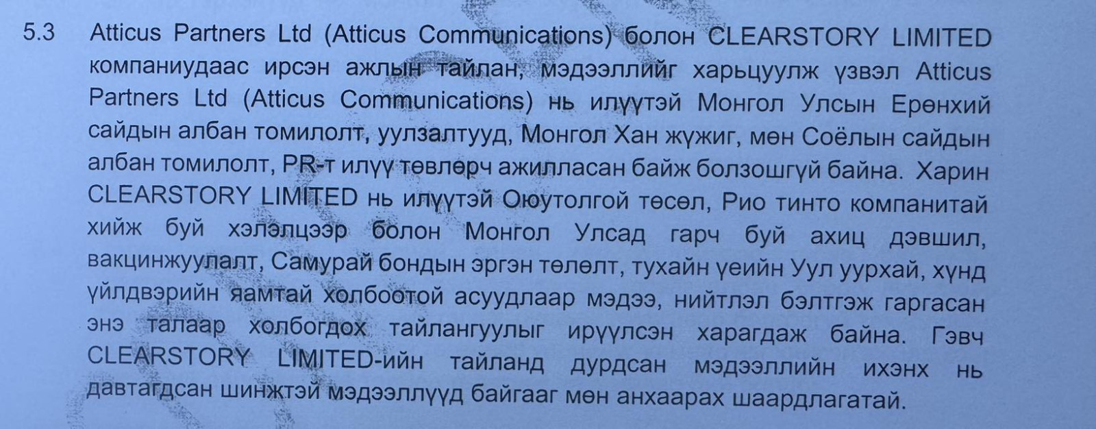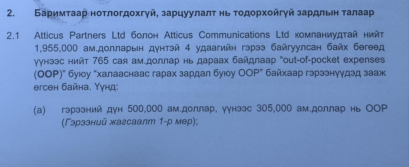 Үүний зардал мөнгө харин хаанаас санхүүждэг байсныг хэн ч мэддэггүй. Тэгвэл Монголын ард түмний өмч болсон төрийн өмчийн компанаас нууц гэрээ хийгдэж энэ бүх ПР, суртачилгаа хийгддэг байсан нь дараахь баримтаар нотлогдоно.