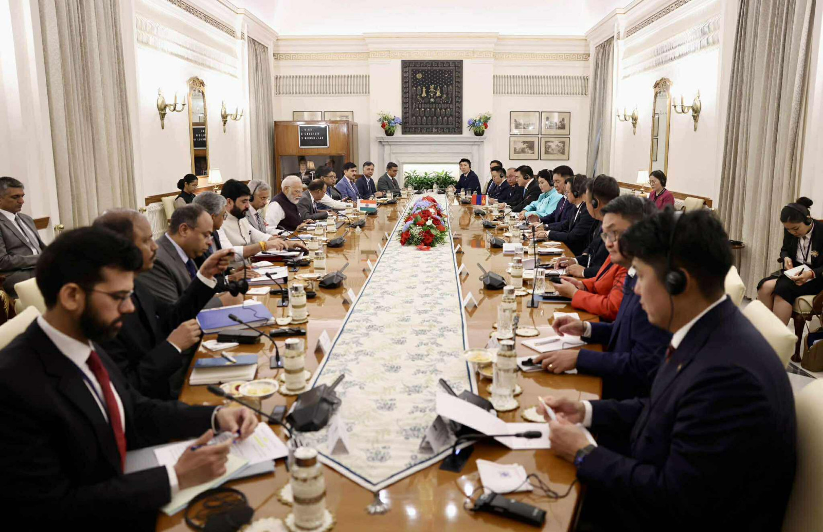 Төрийн тэргүүн болон Ерөнхий сайд нар ганцаарчлан уулзсаны дараа албан ёсны хэлэлцээ хийлээ. Ерөнхийлөгч У.Хүрэлсүх Энэтхэг Улсыг манай “гуравдагч хөрш”, Энэтхэг, Номхон далайн бүс нутаг дахь оюун санааны итгэлт түнш хэмээн үздэг бөгөөд “Стратегийн түншлэл”-ийн харилцааг улам бүр гүнзгийрүүлж, хамтын ажиллагааны цар хүрээг өргөжүүлэн хөгжүүлэхийн төлөө байгааг тэмдэглэв.
