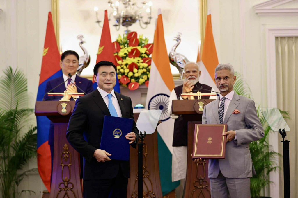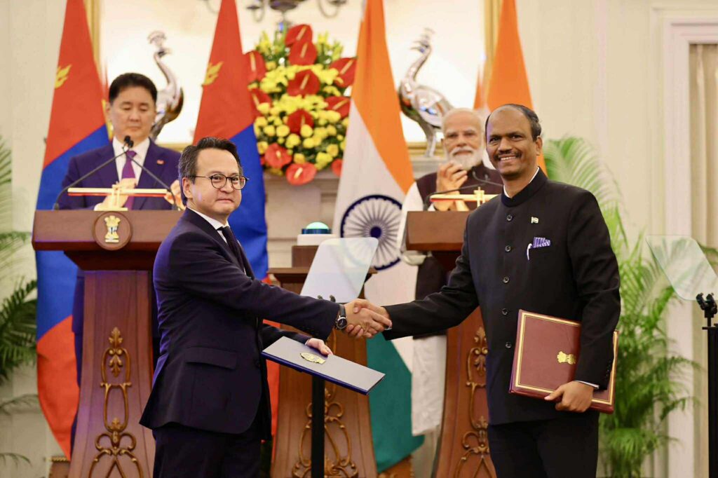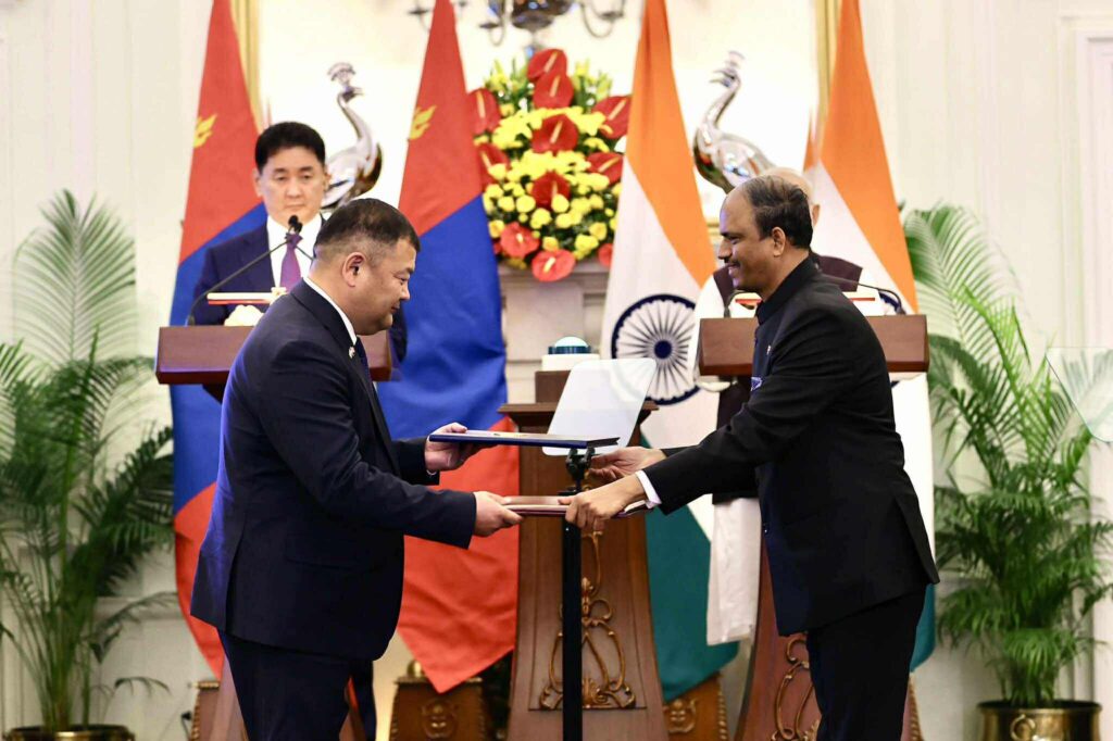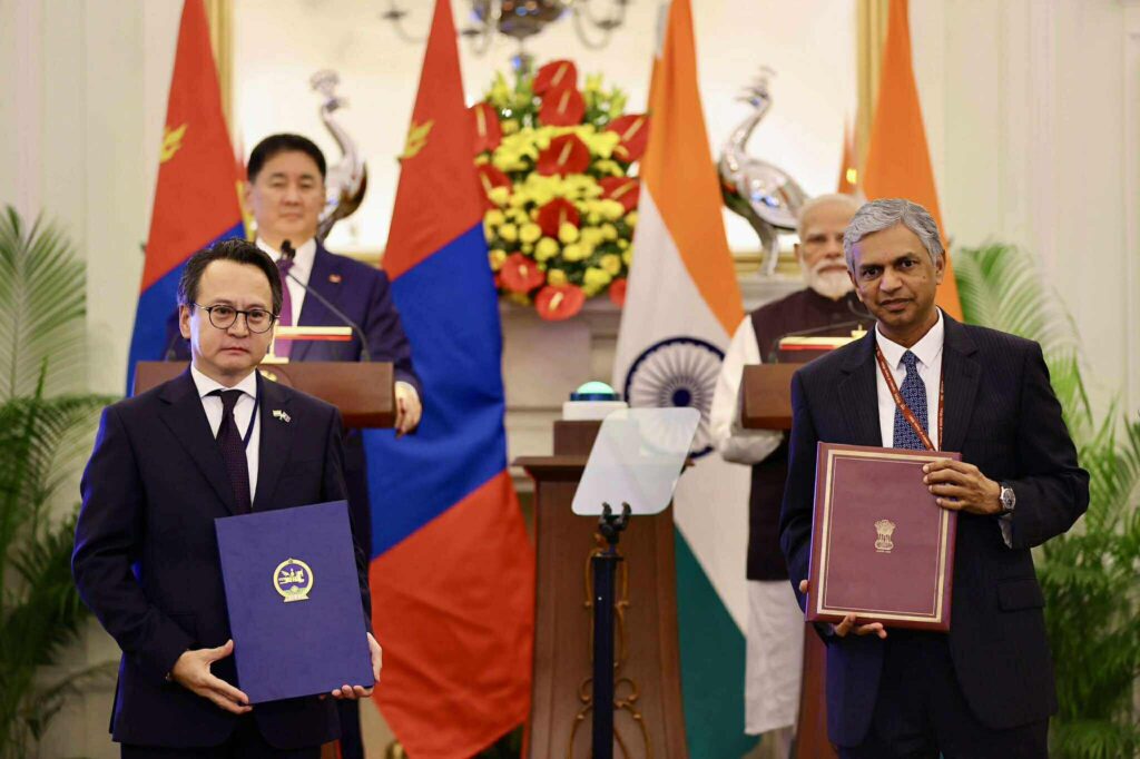 Харилцаа, хамтын ажиллагааг өргөжүүлэн хөгжүүлэхтэй холбоотой баримт бичгүүдэд гарын үсэг зурах ёслолд Монгол Улсын Ерөнхийлөгч У.Хүрэлсүх, БНЭУ-ын Ерөнхий сайд Н.Моди нар оролцлоо.