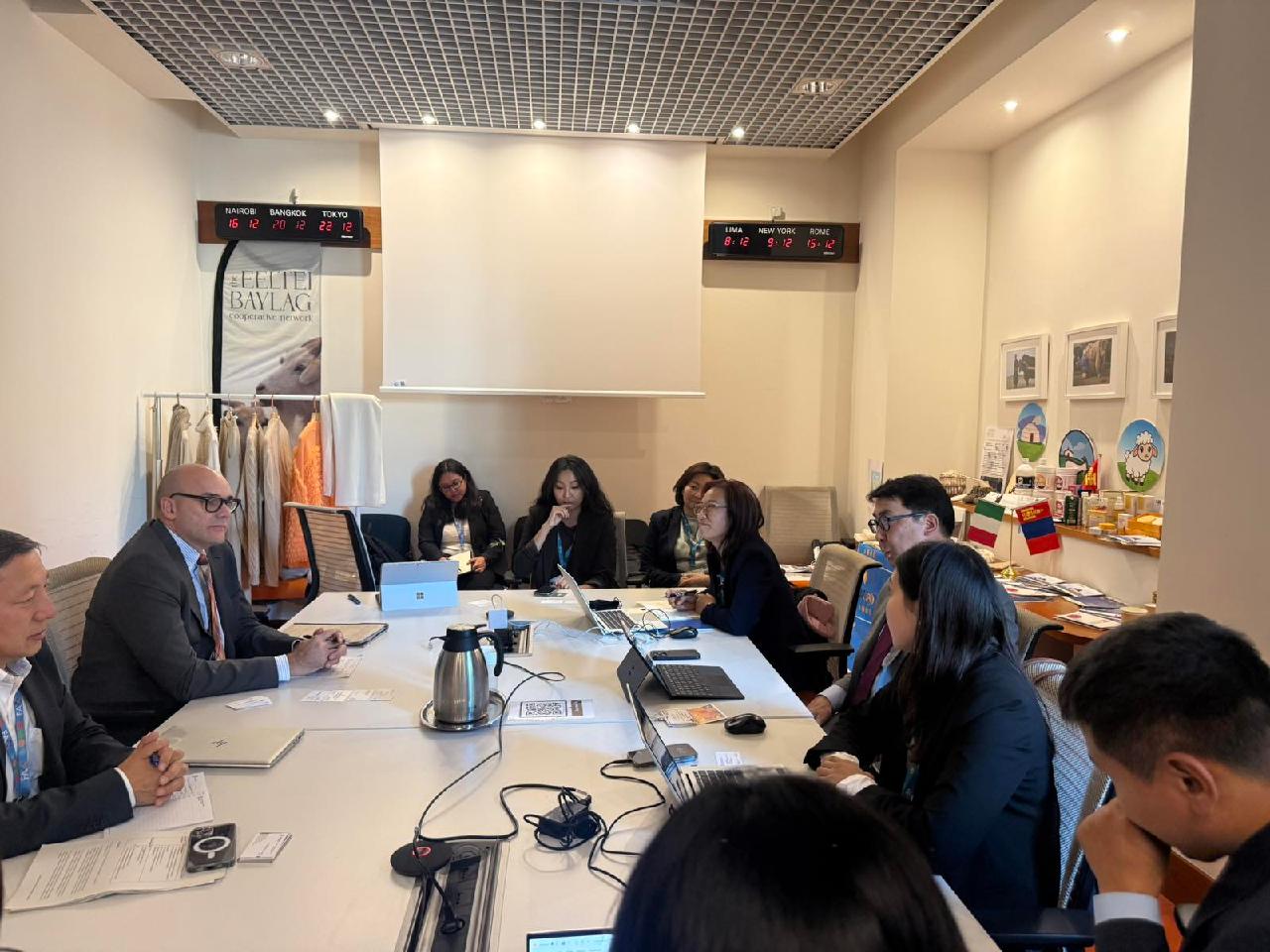НҮБ-ын Хүнс, хөдөө аж ахуйн байгууллагад (FAO) ажиллаж буй Монголын төлөөлөгчид тус байгууллагын Хөрөнгө оруулалтын төвийн удирдлагуудтай уулзалт зохион байгууллаа. Уулзалтад Хүнс, хөдөө аж ахуй, хөнгөн үйлдвэрийн яамны Төрийн нарийн бичгийн дарга Т.Жамбалцэрэн болон НҮБ-ын ХХААБ-ын Хөрөнгө оруулалтын төвийн төлөөлөгчид оролцсон байна.