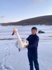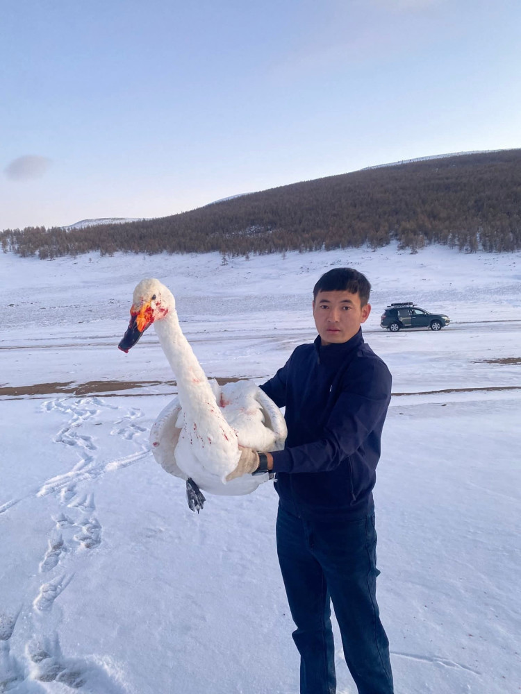 Завхан аймгийн Яруу сумын төвөөс 15 км зайд орших, Хаг нуурт шархадсан хун шувуутай тус нутгийн иргэн н.Санжаа таарч, аймгийн Байгаль орчны газарт хүргэж өгсөн байна. Мэргэжлийн хүмүүс тус хун шувууг цас орох үеэр Хаг нуураас буцаж байсан 80 гаруй хун сүргээс шархдаж үлдсэн хэмээн таамаглаж байгаа юм. Улмаар тус хун шувуунд тусламж үйлчилгээ үзүүлж байна.