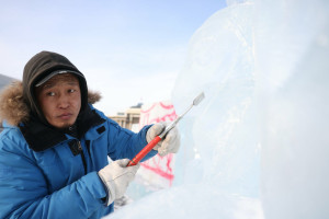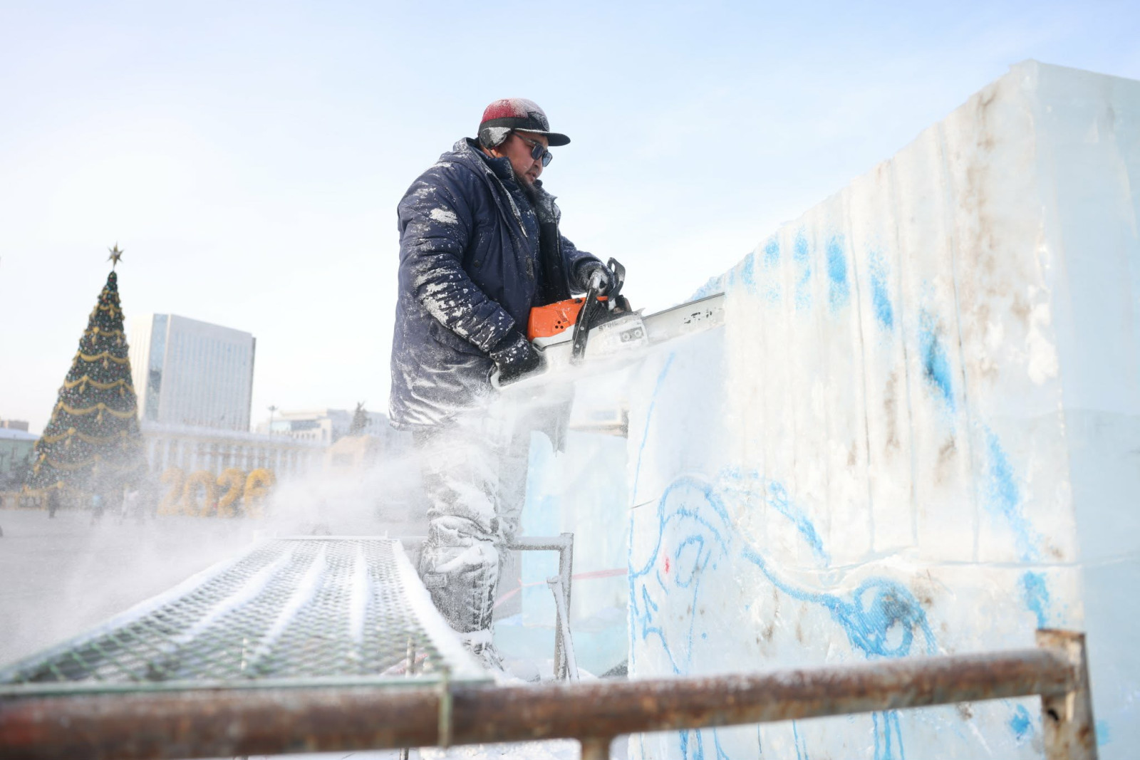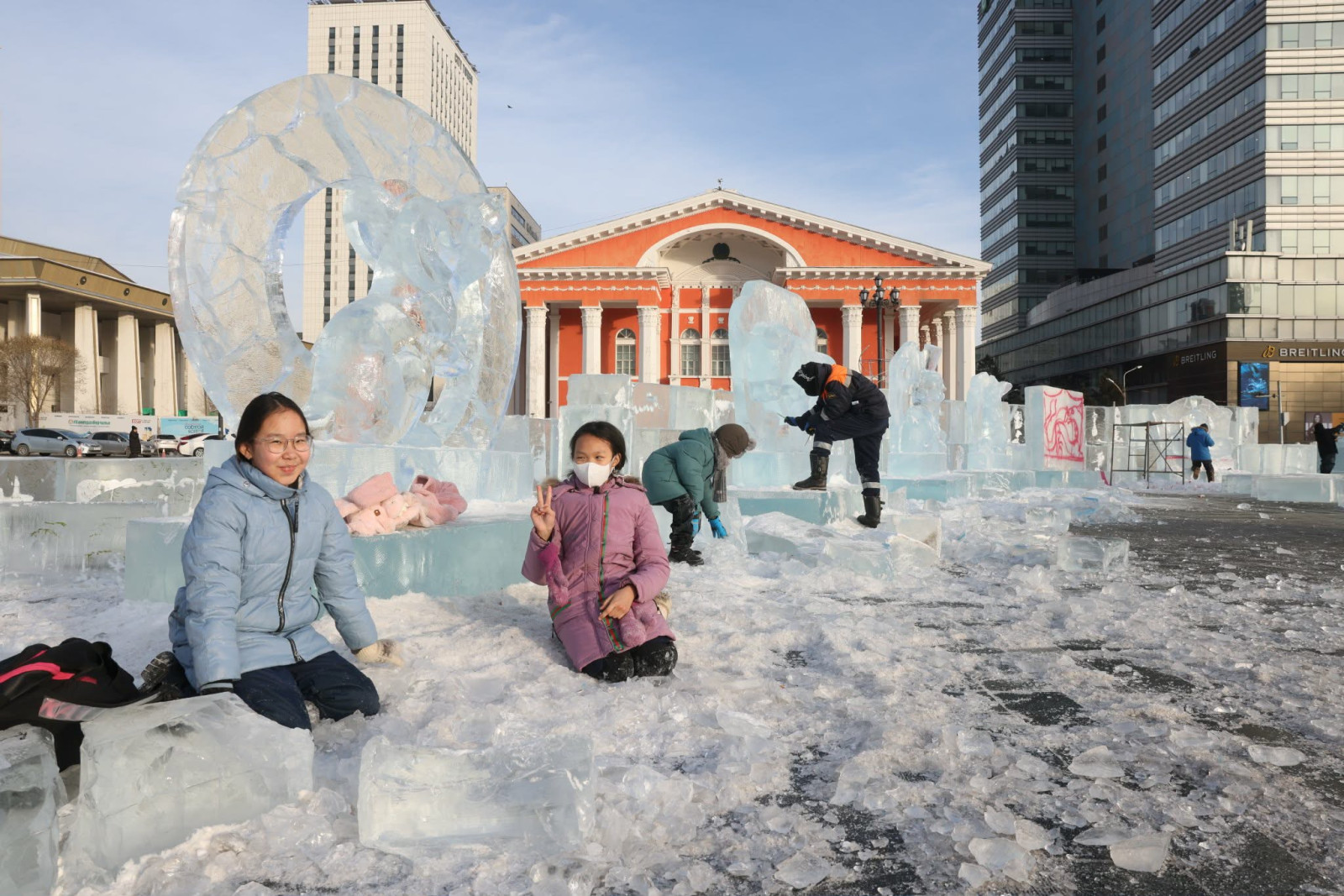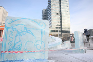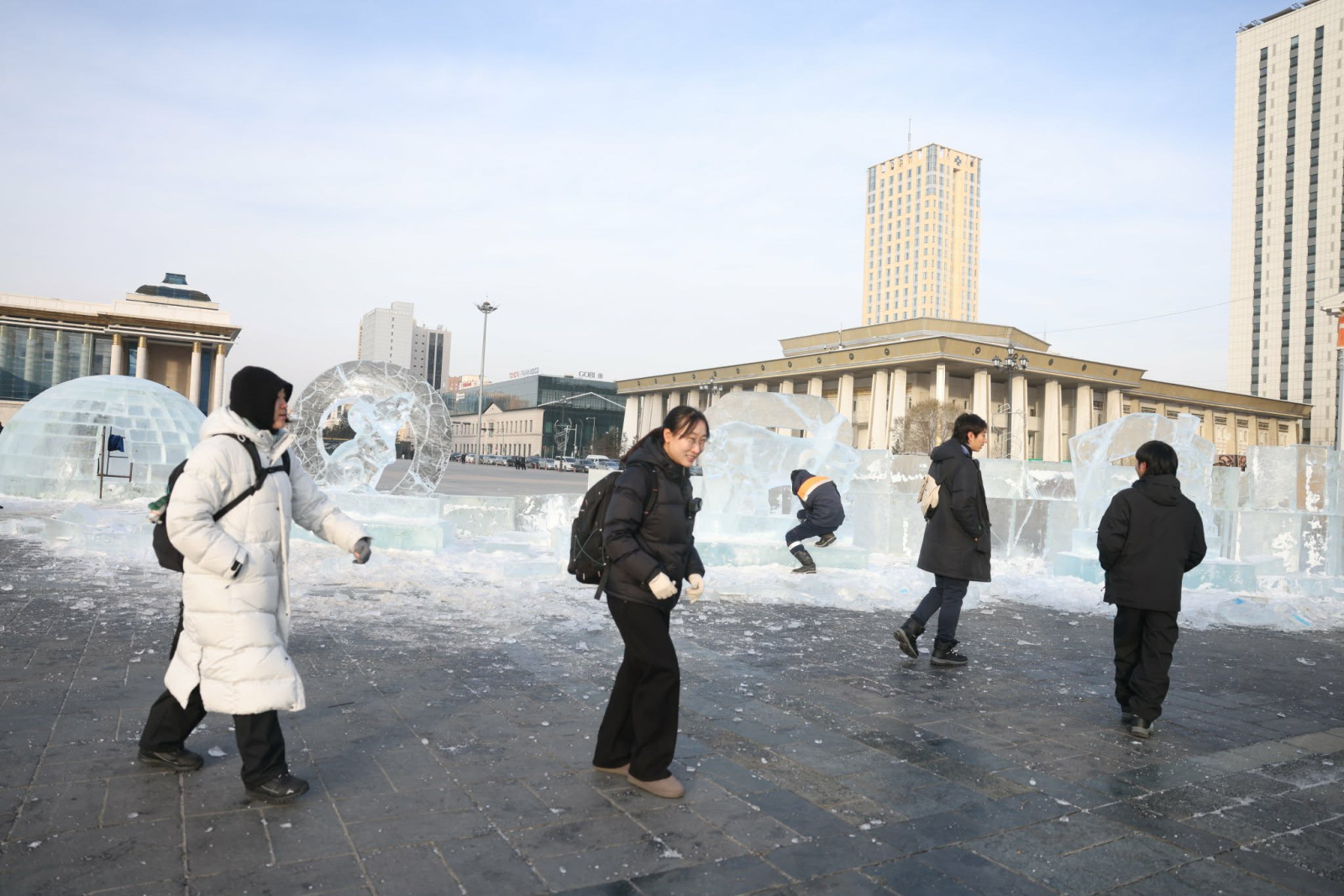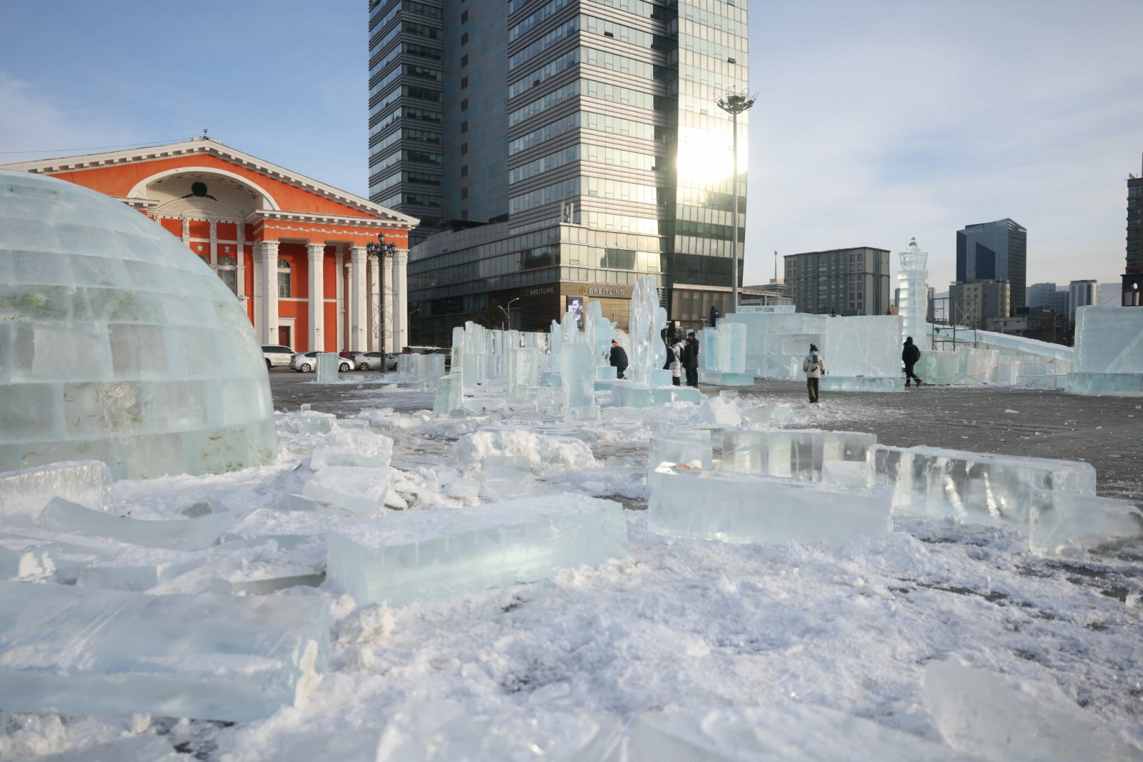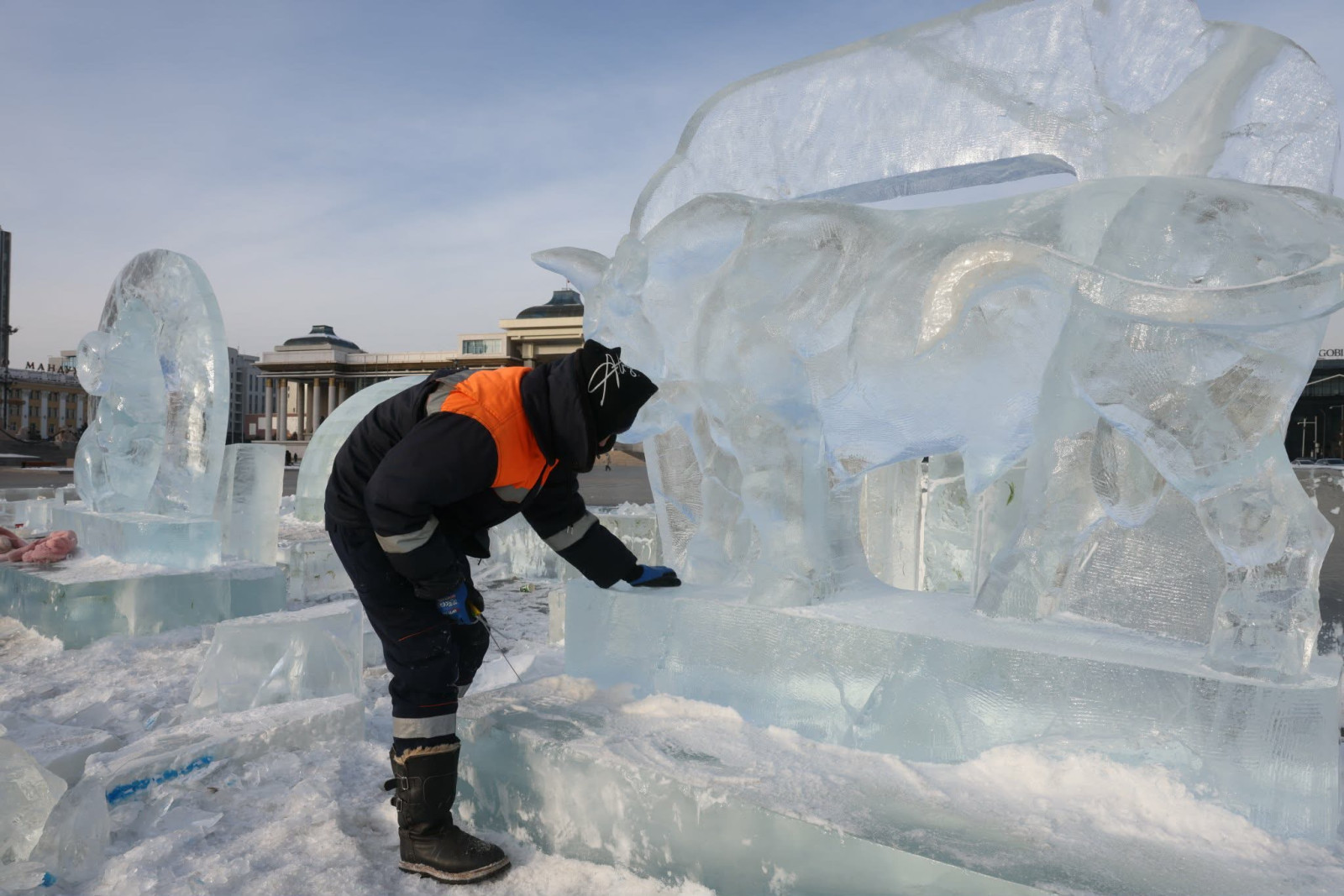 ФОТО: Төв талбайд мөсөн хотхон урлаж байна