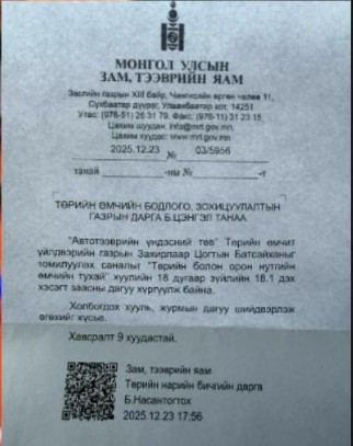 Тодруулбал, Зам тээврийн яамны Төрийн нарийн бичгийн дарга Б.Насантогтох ТӨБЗГ-ын дарга Б.Цэнгэлд "АТҮТ-ийн захирлаар Ц.Батсайханыг томилуулах саналаа хүргүүлж байна" хэмээн албан бичиг өгсөн байна.