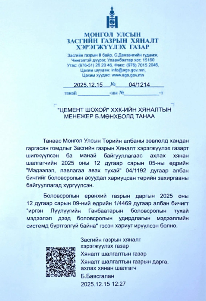 Гэвч Л.Ганбаатар нь дээд боловсролгүй, тракторчин мэргэжилтэй гэдгийг Сэлэнгэ аймгийн АН-ын төлөөлөгч нар олон нийтэд мэдээлж байна. Улмаар Л.Ганбаатарын боловсролын байдлыг тодруулахаар Боловсролын ерөнхий газарт хандахад "Дипломгүй нь үнэн болно" гэдэг хариуг өгчээ. Тодруулбал, Хяналт хэрэгжүүлэх агентлагаас "Цемент шохой" ХХК-ийн Хяналтын менежер Б.Мөнхболдод ирүүлсэн албан бичигт "Боловсролын ерөнхий газрын даргын 2025 оны арванхоёрдугаар сарын 09-ний өдрийн 1/4469 дугаар албан бичигт "иргэн Лүүлүүгийн Ганбаатарын боловсролын тухай мэдээлэл дээд боловсролын удирдлагын мэдээллийн системд бүртгэлгүй байна" гэсэн хариуг ирүүлсэн болно.