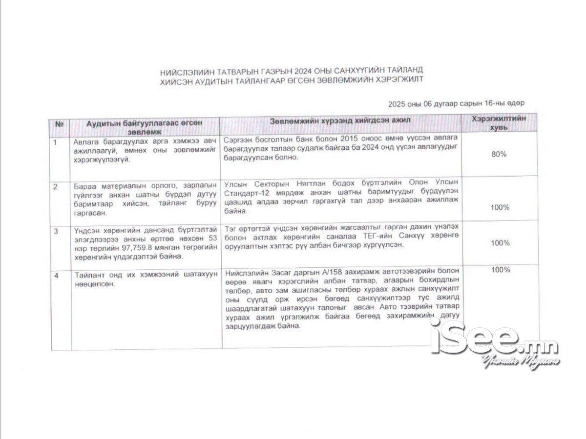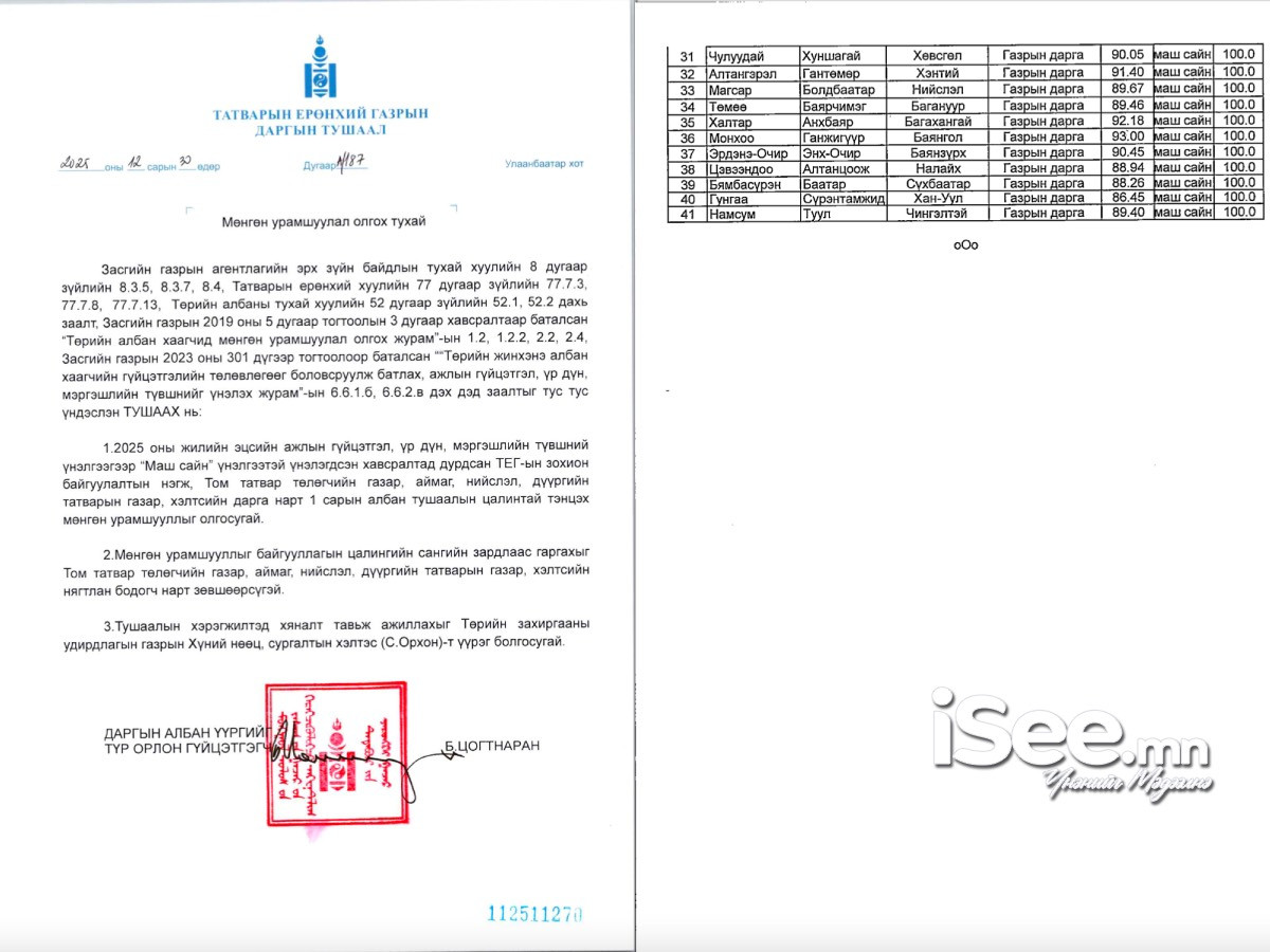 Тэгвэл өнгөрсөн 2024 онд Нийслэлийн Засаг даргын захирамжаар Нийслэлийн Татварын газарт 175 сая 977 мянган төгрөгийн нэмэлт санхүүжилт олгож, үндсэн ажил үүргээ гүйцэтгэсэн ажилтнуудад дэмжлэг олгож байсан нь аудитын байгууллагын шалгалтаар илэрч байжээ.
