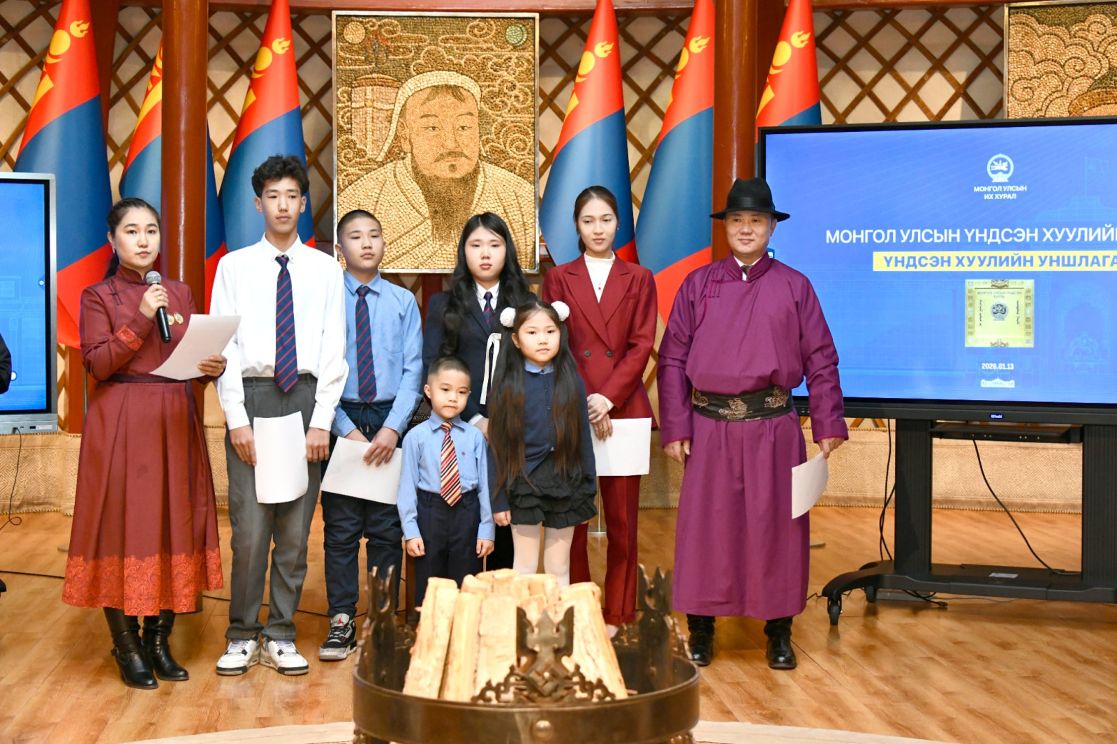 -Үндсэн хууль батлагдсан өдөр энэхүү уншлагад оролцохоор үндэсний дээл хувцастайгаа ирсэн. Гоё байна.