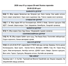 Эрчим хүчний системд аваарын горим үүсэхээс сэргийлэн нэгдсэн сүлжээнд холбогддог тодорхой байршлуудад цахилгаан эрчим хүчний төлөвлөсөн хэрэглээг “Диспетчерийн үндэсний төв” ТӨХХК-ийн шийдвэрээр хуваарийн дагуу 2 цагийн хугацаатай хязгаарлах арга хэмжээ авч байна.
