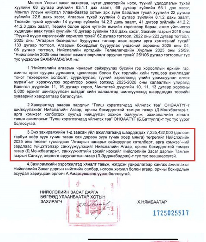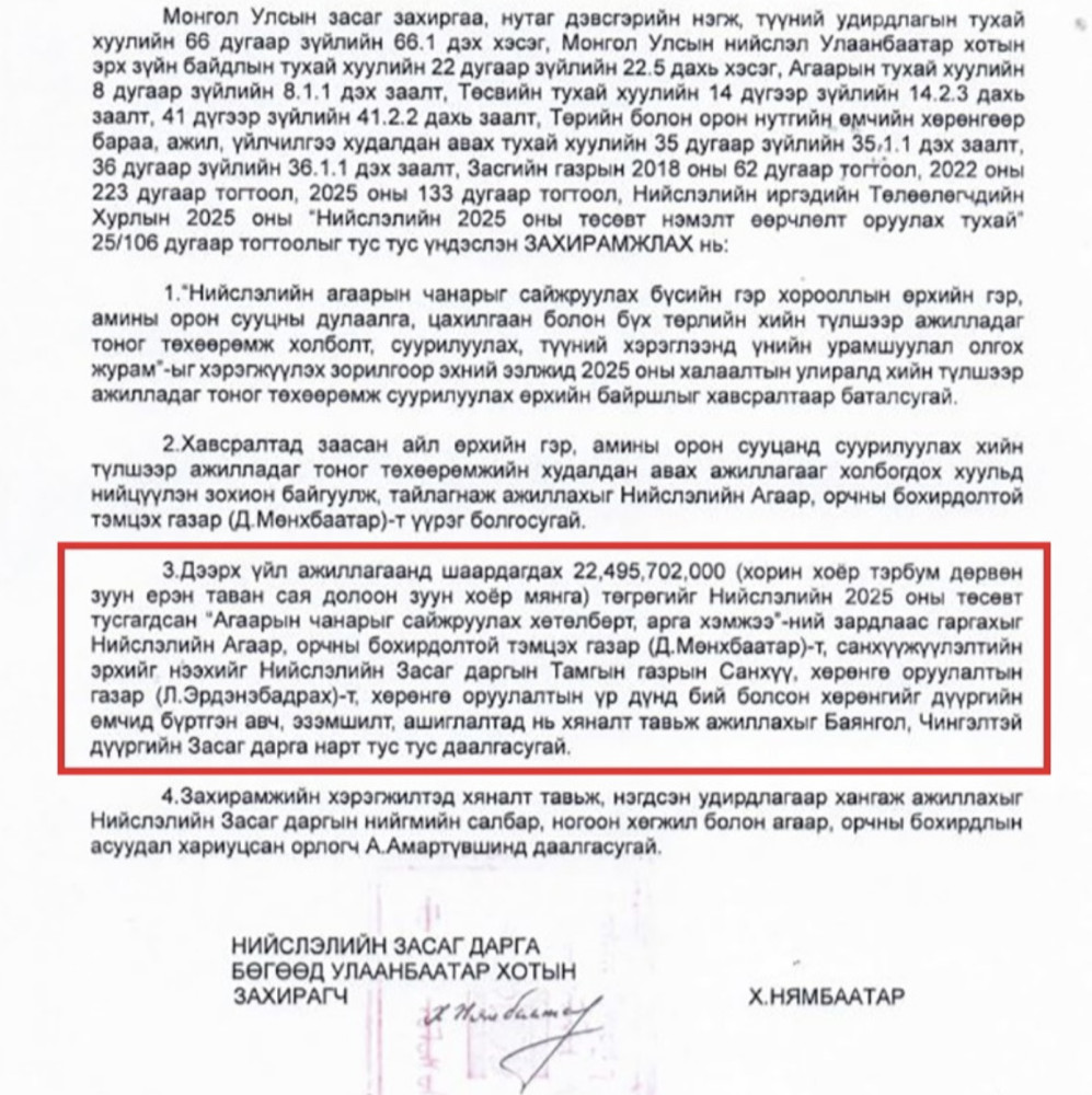 Хотын дарга Х.Нямбаатар тушаал гаргаж, хийн түлшид шилжүүлж байгаа айл өрхүүдийн дулаалгад 15 тэрбум 268 сая, хийн түлшээр ажилладаг тоног төхөөрөмж суурилуулахад 22 тэрбум 495 сая төгрөг, тоног төхөөрөмжийн холболт суурилуулалт, түүний хэрэглээнд үнийн урамшуулал олгоход 7 тэрбум 235 сая төгрөг буюу нийт 45 орчим тэрбум төгрөгийг зарцуулахаар болсон юм байна.