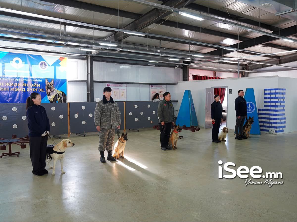 Бид үргэлжлүүлэн дөврөн улирлын турш 24 цагаар албаны нохойн сургалтыг зохион байгуулах боломжтой заалтай танилцлаа. Энд нохой сургахад ашиглах боломжтой бүхий л техник, эд зүйлс, үнэр орлуулагч бодисууд байх аж. Ингээд хайрцган дотор үнэр орлуулагч бодисоо нууж, тухайн бодисыг үнэртсэн эрэлч нохой ямар хариу үйлдэл үзүүлж илрүүлэх талаар туршилтыг хийхэд бүх нохой нуусан эд зүйлсийг маш амжилттай илрүүлж байлаа.