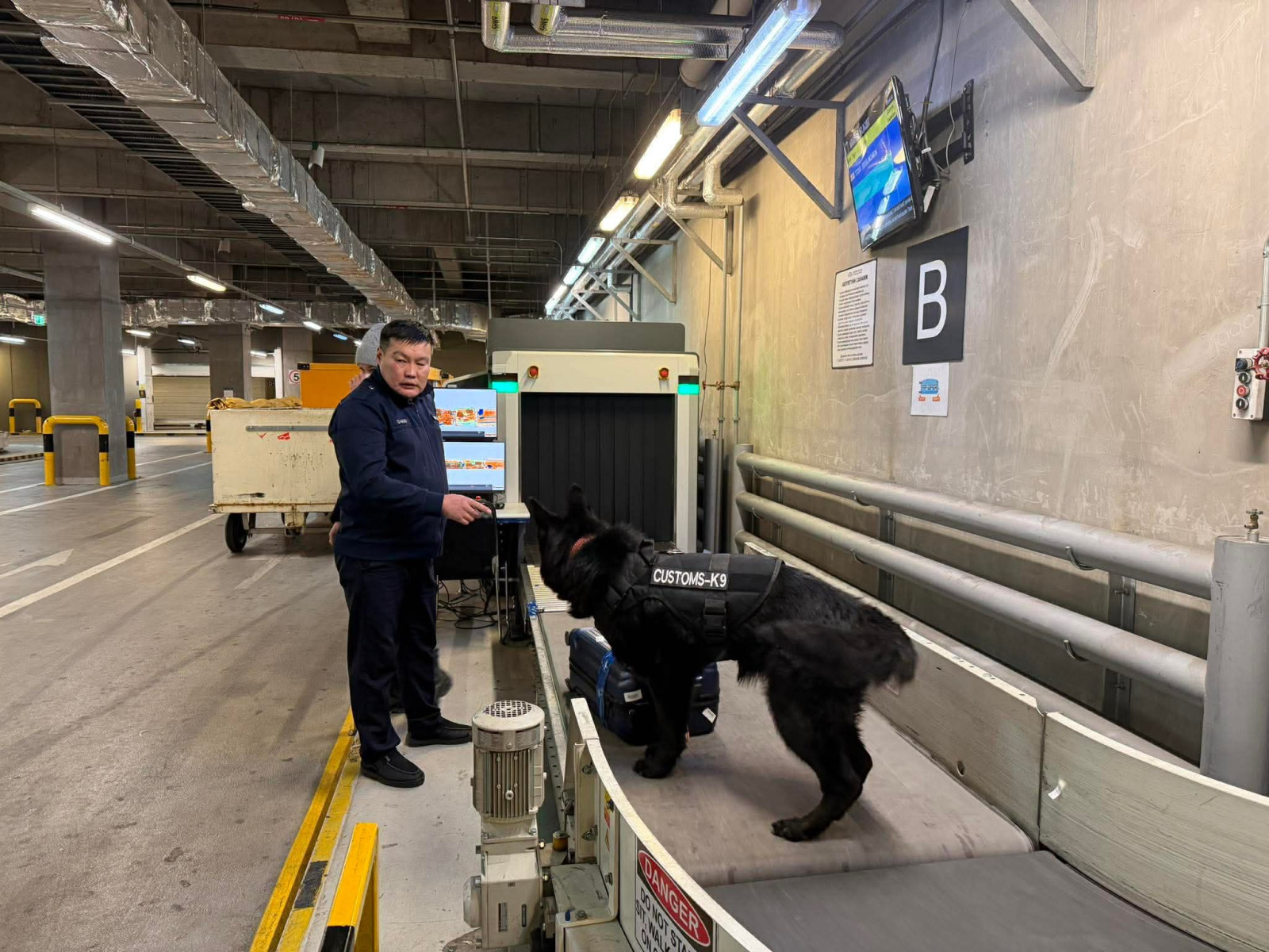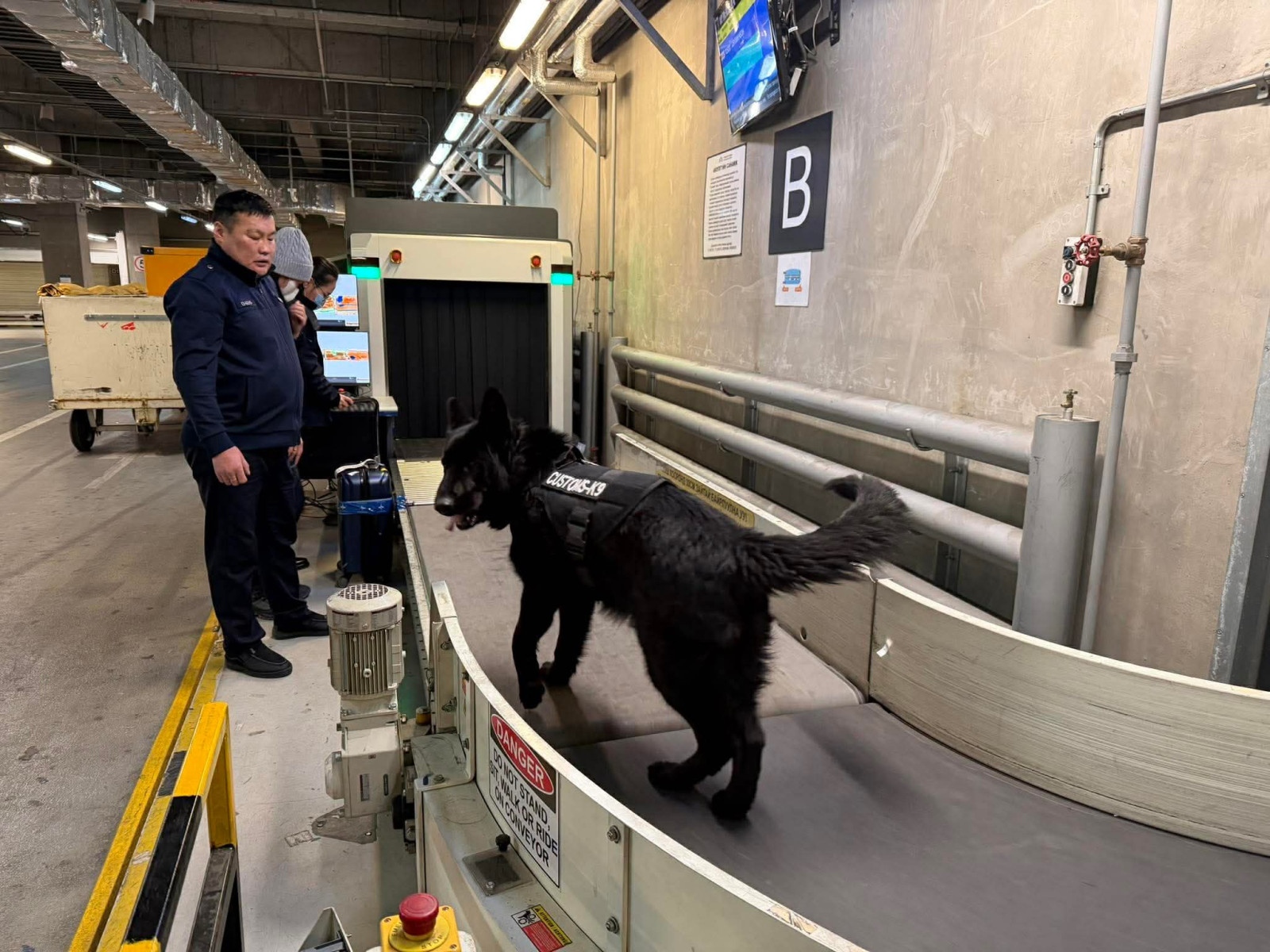 Үргэлжлүүлэн бид “Чингис хаан” олон улсын нисэх буудал дээр эрэлч ноход хэрхэн үүрэг гүйцэтгэж байгаа талаар сурвалжиллаа. “Чингис хаан” гаалийн газрынхаа эрэлч нохойнууд ирж байгаа ачааны чиглэлд үзлэг шалгалт хийлгэдэг. Хар тамхи, мансууруулах, сэтгэцэд нөлөөлөх бодис, улсын хилээр орохыг хориглосон бүтээгдэхүүн эрж хайхаас гадна Монгол Улсын хилээр орж ирэх өөр бусад бүтээгдэхүүнийг эрж хайх зорилгоор албаны эрэлч нохой 24 цагаар тасралтгүй гаалийн хяналт шалгалт явуулж байна.