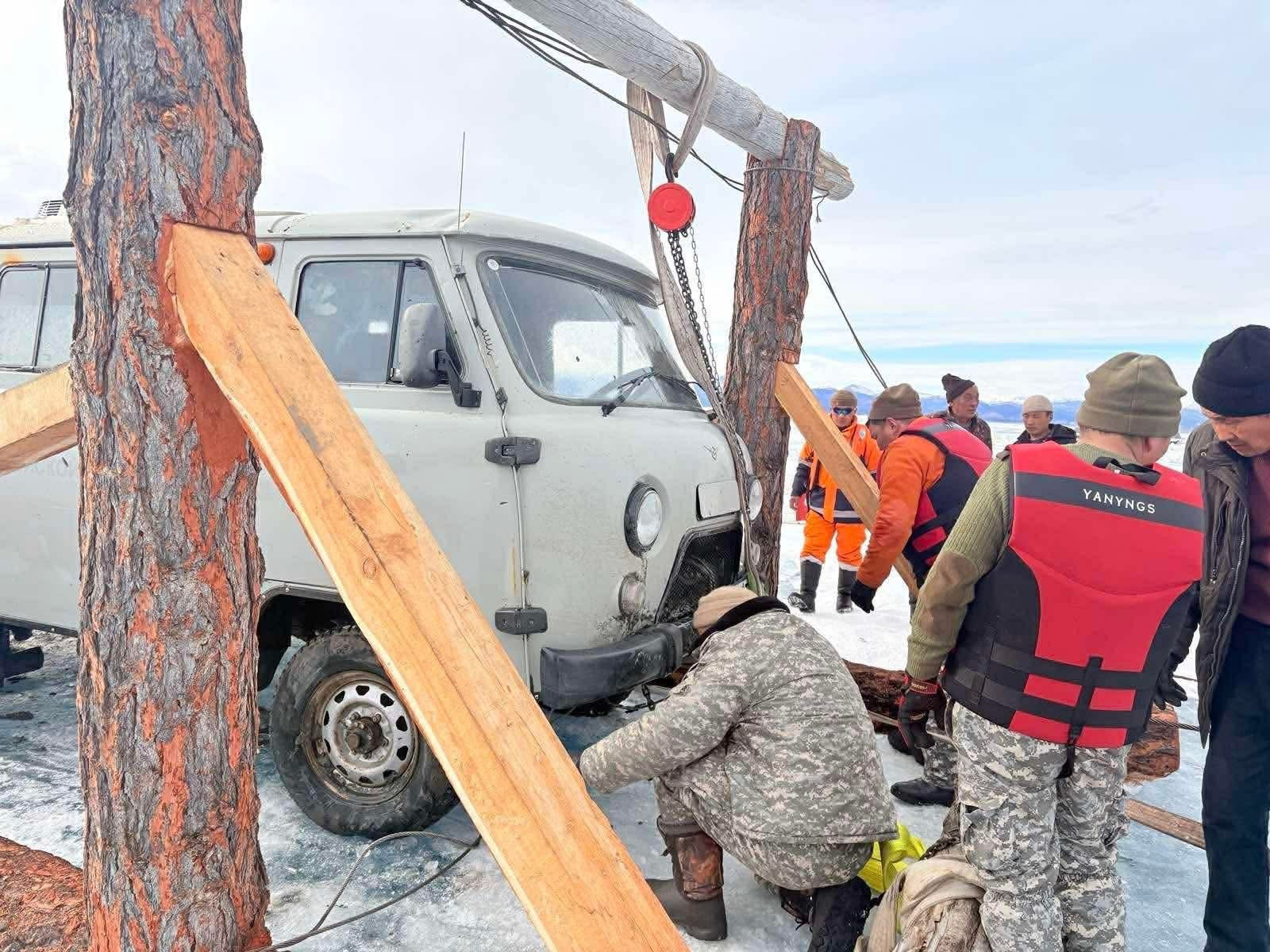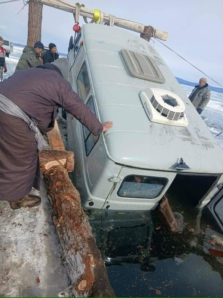 Мөн Хөвсгөл аймагт хоёрдугаар сарын 18-ны өдөр Ренчинлхүмбэ сумын “Хачим” орчимд иргэн Ө.Б-ийн Фургон автомашин дотроо 7 хүнтэй живсэн бөгөөд 1 том хүн, 1 хүүхэд буцалтгүй нэрвэгдсэн. 3 дугаар сарын 16-нд ар гэрийнхэн автомашиныг мөсөнд тулгаж бэлдсэн тул Онцгой байдлын газрын баг шумбалт хийж 2 нэрвэгдэгчийг гаргаж, автомашиныг мөсөн дээр татан гаргажээ.