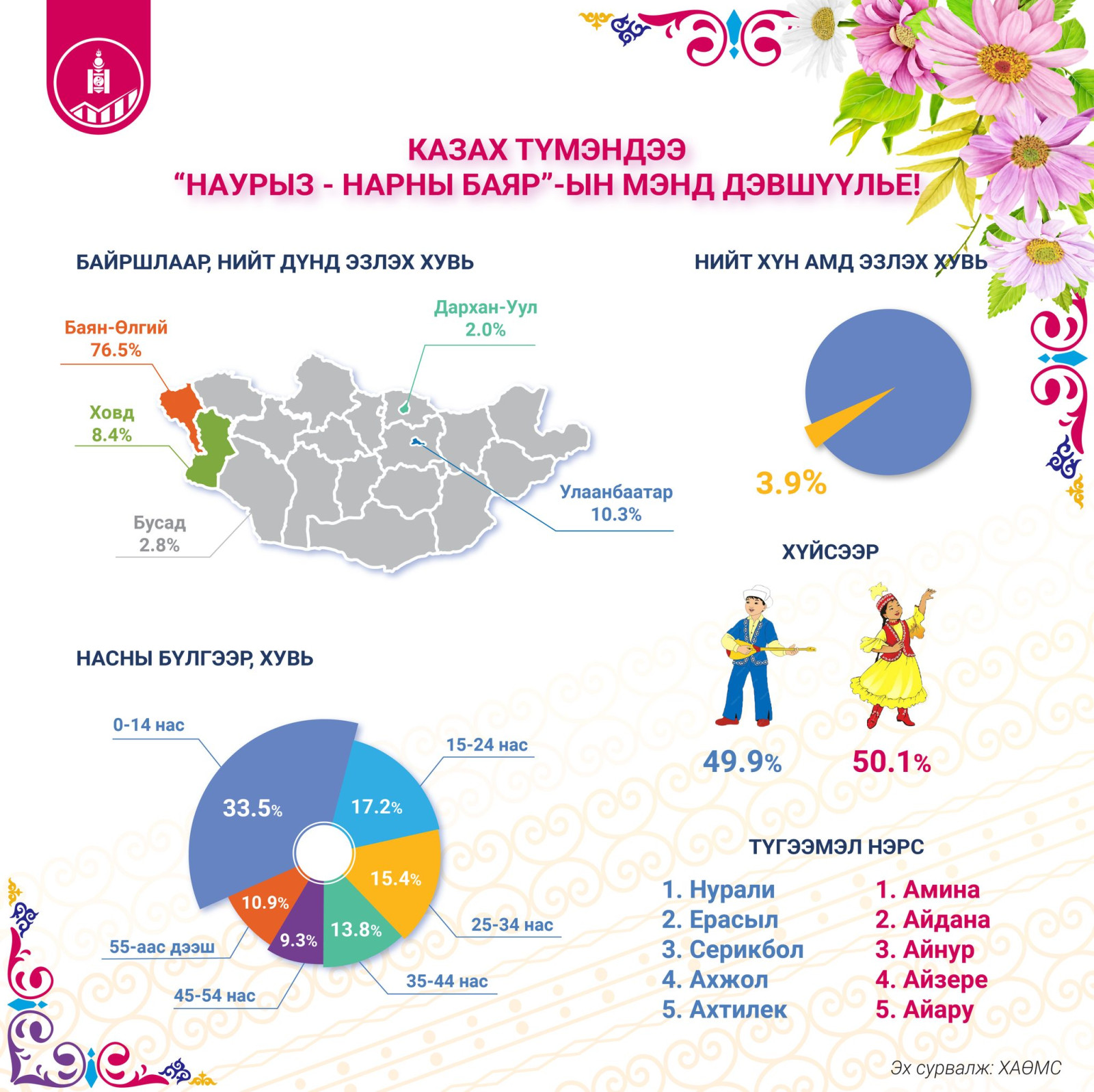 Жил бүрийн гуравдугаар сарын 22-нд Наурызын баяр тохиодог бөгөөд казах түмэн энэхүү баяраа өргөн дэлгэр тэмдэглэн өнгөрүүлж байна.