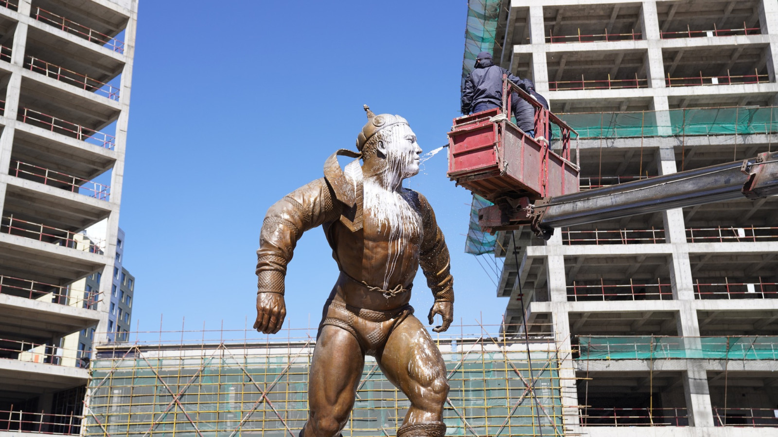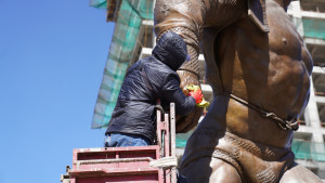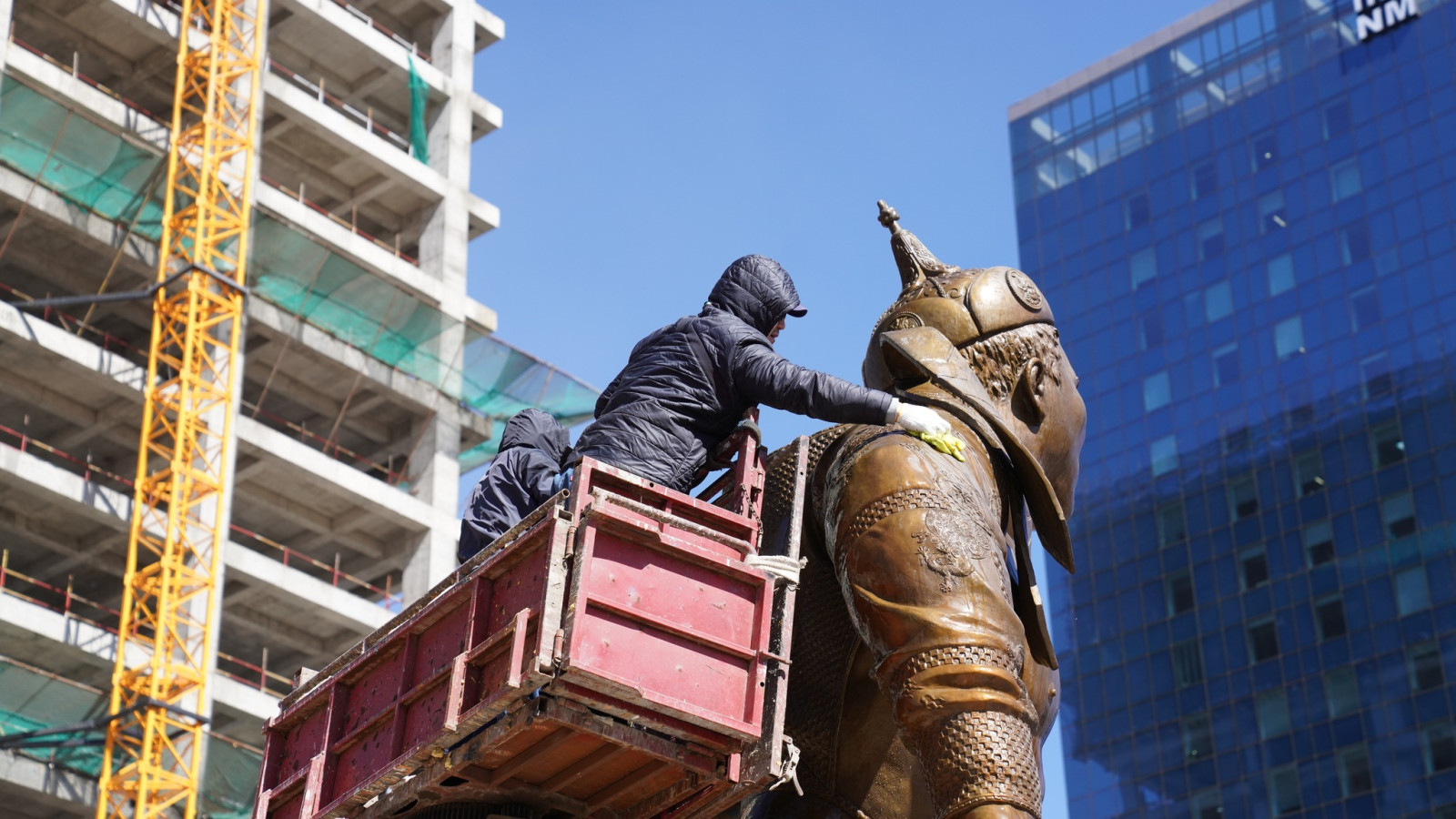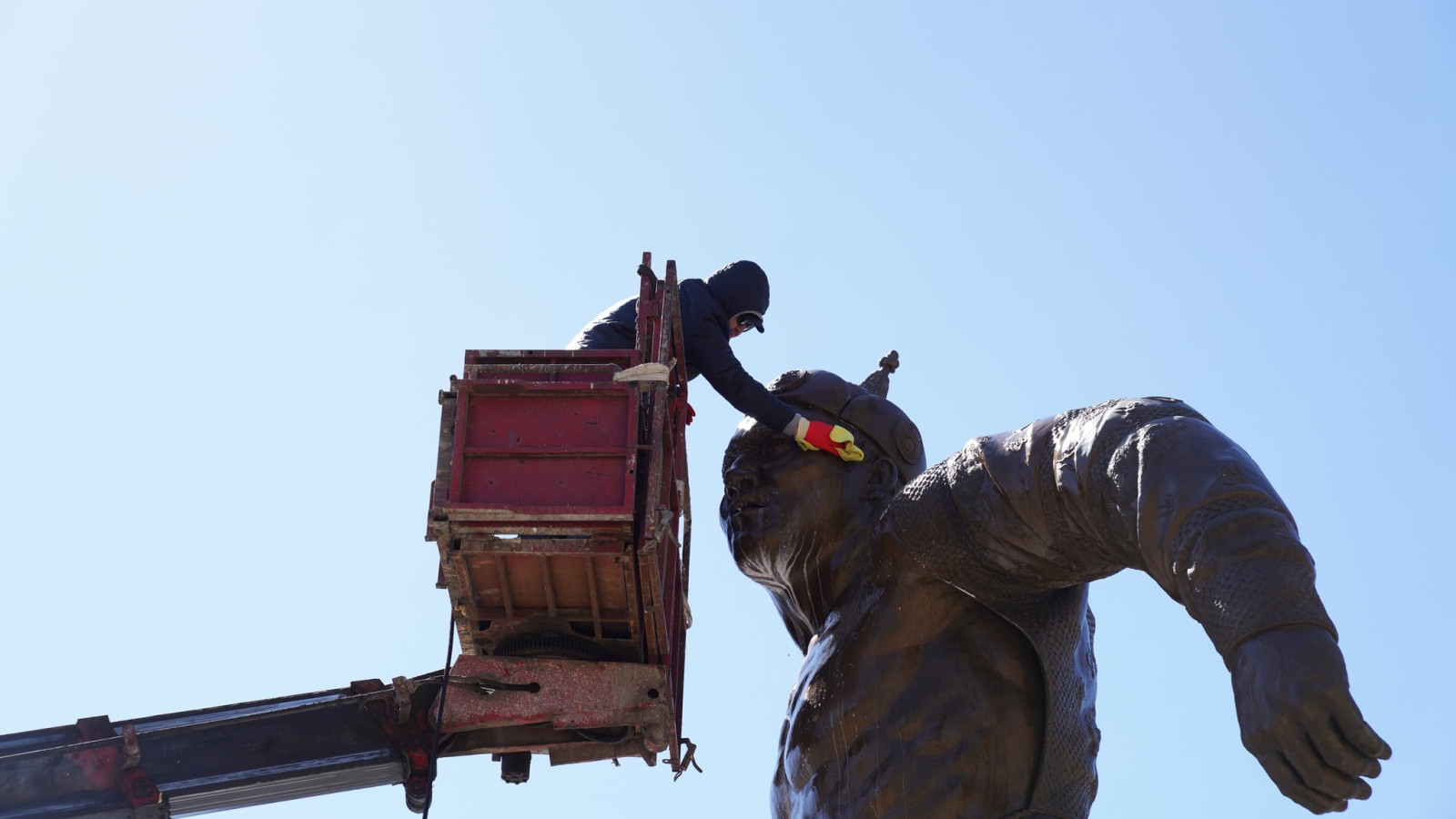 Төв цэнгэлдэх хүрээлэнд сүндэрлэн буй Дархан аварга Жигжидийн Мөнхбат агсны хүрэл хөшөөг өнөөдөр угаан цэвэрлэж, өнгө төрхийг нь сэргээлээ.