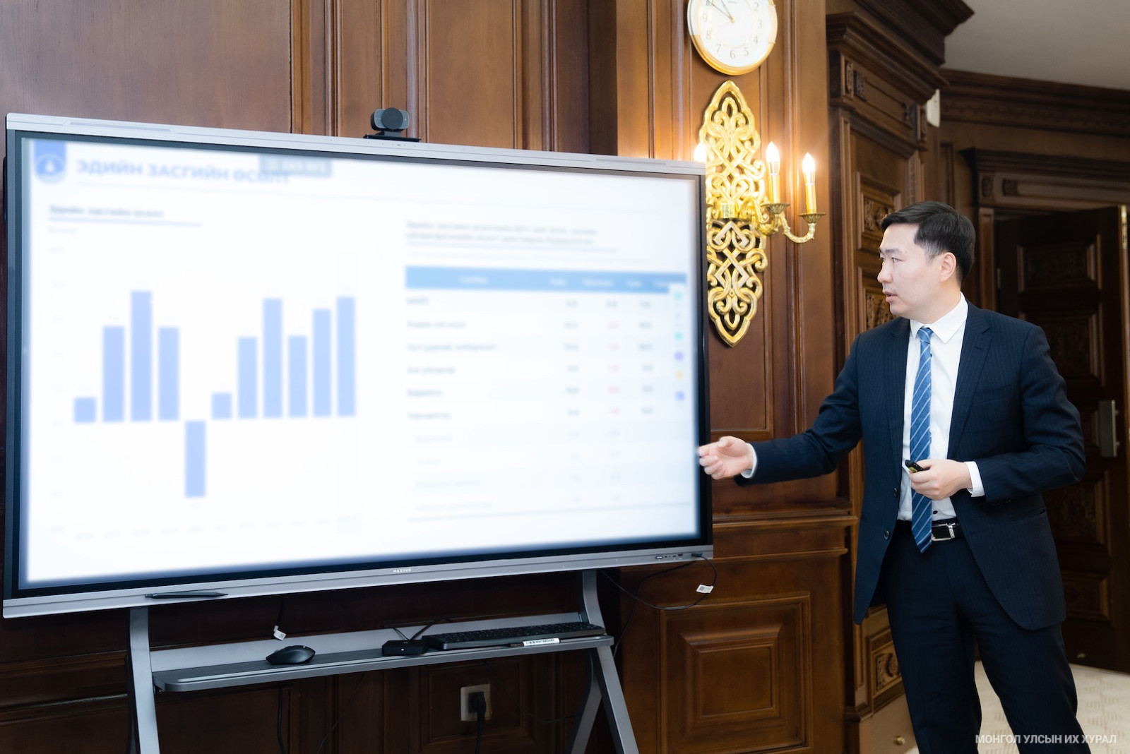 Үндэсний статистикийн хорооны дарга Б.Батдаваа “Эдийн засгийн нөхцөл байдал-өрхийн санхүү” сэдвээр мэдээлэл хийж, нийгэм, эдийн засгийн үндсэн үзүүлэлтүүд, цаашид анхаарах асуудлуудын талаар дэлгэрэнгүй танилцуулав. Эдийн засгийн өсөлтийг өмнө нь улирлаар тооцдог байсан бол одоо сараар тооцдог болсон байна. Тоо баримтаас харахад 2025 онд эдийн засгийн жилийн өсөлт 6.8 хувьтай гарсан бол 2026 оны эхний эхний хоёр сарын байдлаар 7.6 хувийн өсөлттэй харьцангуй сайн дүр зураг харагдаж байгаа ч гадаад, дотоод нөхцөл байдлаас хамаарсан инфляцын өсөлтийн эрсдэл байгааг анхаарч, бага дунд орлоготой иргэдээ дэмжих бодлого хэрэгжүүлж, ажиллах шаардлагатай байгаа талаар Үндэсний статистикийн хорооны дарга Б.Батдаваа мэдээлэлдээ дурдав.Мөн статистикийн мэдээллийг илүү нээлттэй, улсын хэмжээнд мэдээллийг дэлгэрэнгүй нарийвчлалтай гаргах давтамжаа нэмэгдүүлэх зорилгоор өгөгдлийн засаглалыг хөгжүүлэх шаардлагатай байгаа юм байна. Өөрөөр хэлбэл, төрд байгаа мэдээллийн сангуудыг нэгтгэх, өөр хоорондоо мэдээллийг хуваалцах, ашиглахтай холбоотой зохицуулалт дутагдаж буй талаар хөндөн ярилаа. Энэ хүрээнд Статистикийн тухай хуулийн шинэчилсэн найруулгын төслийг боловсруулж байгаа гэв.