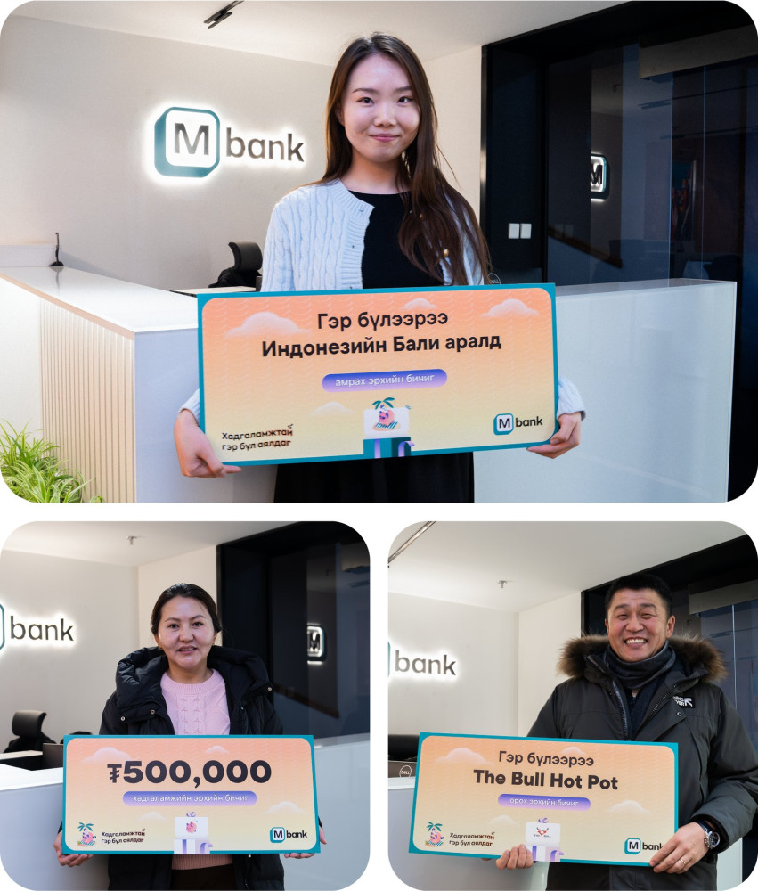 Өмнөхтэйгээ ижил 6 сараас дээш хугацаатай хадгаламжийн дансандаа нэмэх ₮100,000 тутамд нэг сугалаатай болж, гэр бүлээрээ олон бэлгийн эзэн болоорой.