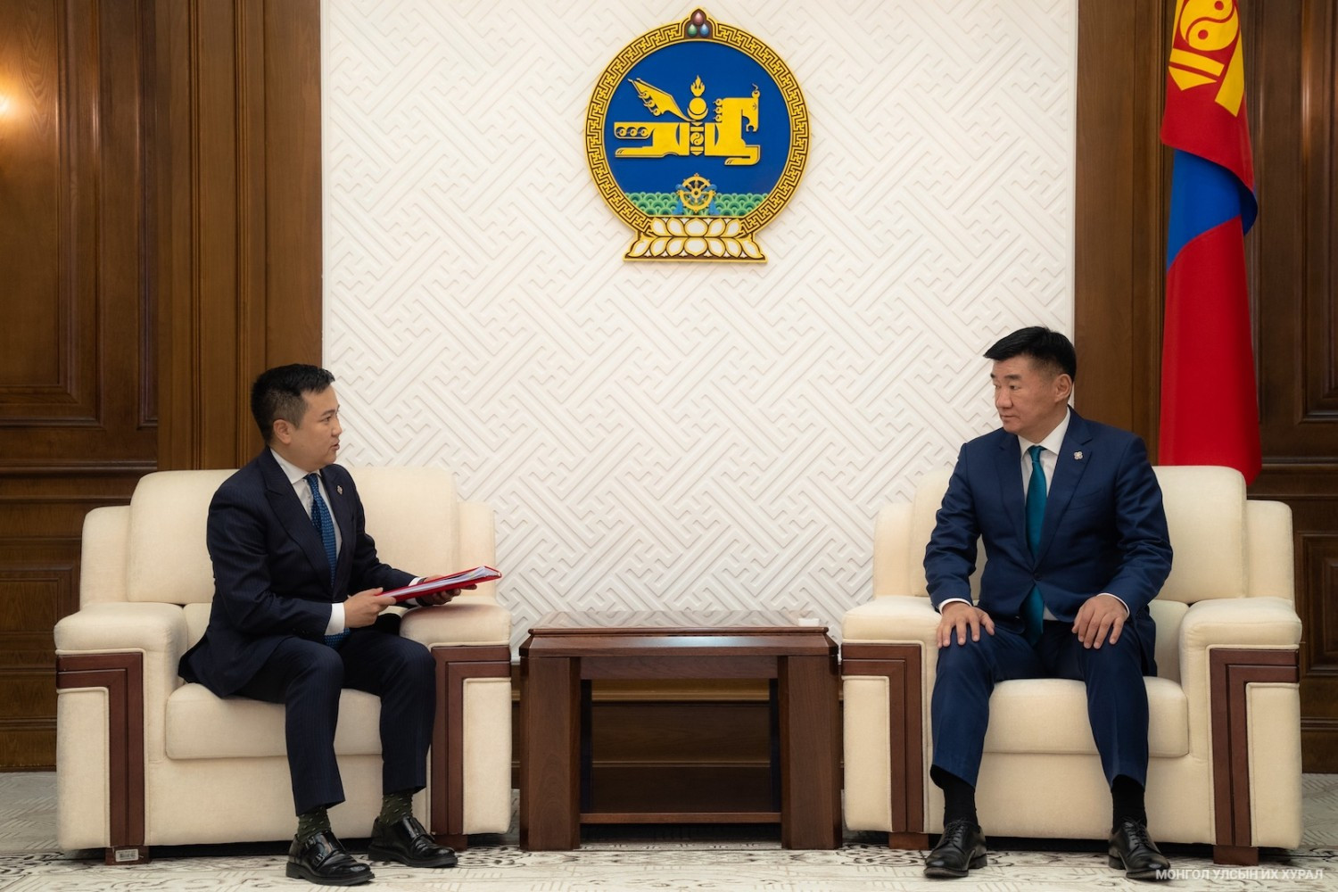Монгол Улсын Их Хурлын дарга С.Бямбацогтод өнөөдөр (2026.04.09) Төрийн болон орон нутгийн өмчийн тухай хуульд өөрчлөлт оруулах тухай хуулийн төслийг Улсын Их Хурлын гишүүн П.Сайнзориг, А.Ариунзаяа, Б.Баярбаатар нар өргөн мэдүүллээ.