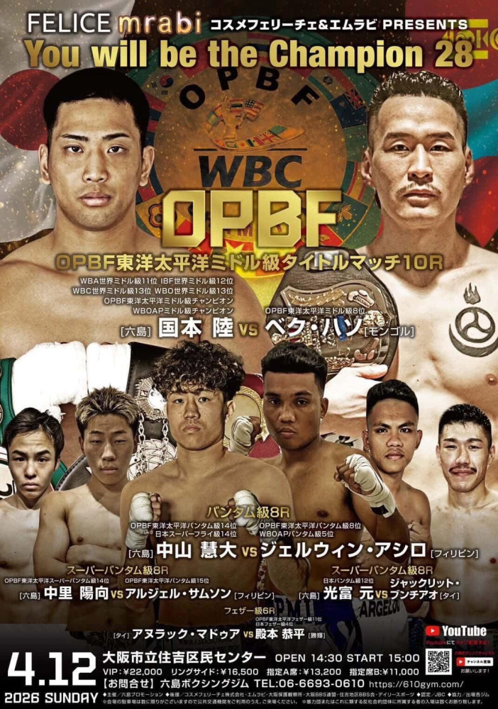Түүний өрсөлдөгчөөр Японы дунд жингийн нүүр царай, WBА холбооны дэлxийн чансааны 11-т, WBC холбооны дэлxийн чансааны 13-т байдаг, WBА болон WBC холбооны Ази Номхон далайн дунд жингийн аварга Рикү Кинүмотог нутагт нь хүнд цохилтоор ялалт байгуулж аваргын бүсний эзэн боллоо.