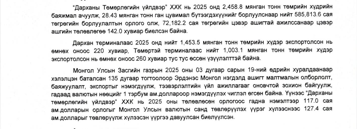“Дарханы төмөрлөгийн үйлдвэр” ХХК-ийн 2025 оны санхүүгийн үзүүлэлтүүд нь үйл ажиллагааны үр ашиг, орлогын өсөлтөөрөө дээд хэмжээнд хүрсэн байна.