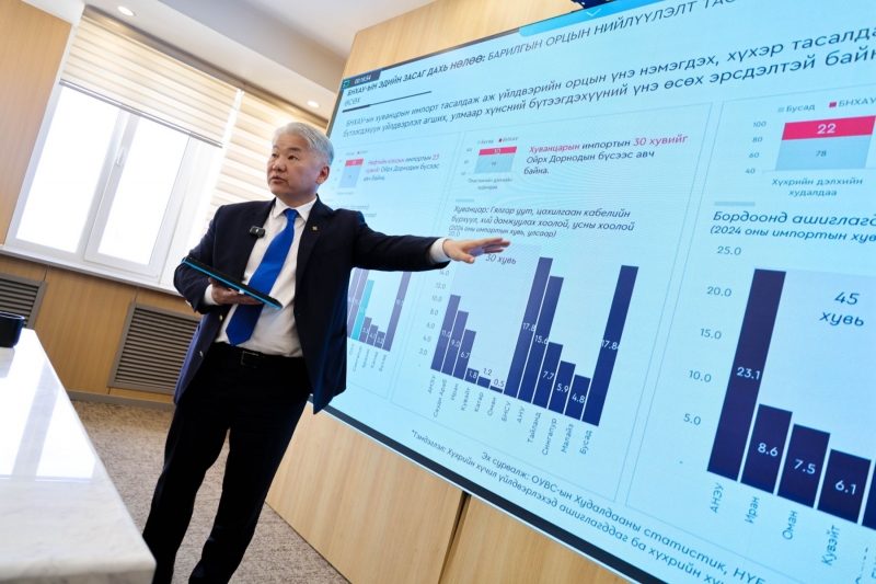 Уулзалтын эхэнд Эдийн засаг, хөгжлийн яамны Макро эдийн засгийн бодлогын газрын дарга Л.Энх-Амгалан Монгол Улсын 2026 оны нэгдүгээр улирлын эдийн засгийн нөхцөл байдлыг танилцуулж, валютын дотоодын нөөцийн хадгадах, уул уурхайн болон хөдөө аж аж ахуйн гаралтай бараа бүтээгдэхүүний экспортыг нэмэгдүүлэх чиглэлээр мэдээлэл өгсөн юм.