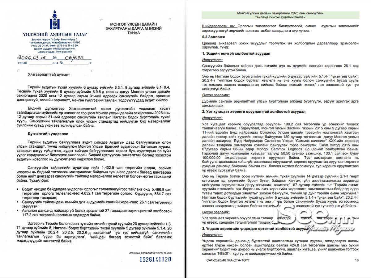 Энэ нь Төрийн болон орон нутгийн өмчийн тухай хуулийн 14 дүгээр зүйлийн 2.1-т “өөрт олгогдсон эд хөрөнгийн бүрэн бүтэн байдлыг хангаж, үйл ажиллагааныхаа зорилгод нийцүүлэн зориулалтын дагуу эзэмшиж, ашиглах;”, 67 дугаар зүйлийн 1-т “Төрийн өмчит хуулийн этгээдийн эрх баригч нь өмч хөрөнгийн хадгалалт, хамгаалалтын байдалд өдөр тутам тавих дотоодын хяналтыг зохион байгуулж, түүний үр дүнг төрийн өмнө хариуцна.” Нягтлан бодох бүртгэлийн тухай хуулийн 5 дугаар зүйлийн 5.1.4-т “үнэн зөв байх”, 20.2.4-т “нягтлан бодох бүртгэл хөтлөлт нь энэ хууль болон санхүүгийн бусад хууль тогтоомжид заасан шаардлагад нийцэж байгаа эсэхийг хянах;” гэж заасантай тус тус нийцэхгүй байгаа тул Үндэсний аудитын газраас "Урт хугацаат хөрөнгө оруулалтын талаар холбогдох арга хэмжээг авч, хөрөнгө оруулалтын үр өгөөж, ханшийн тэгшитгэлийг тооцож бүртгэх" зөвлөмж өгчээ.