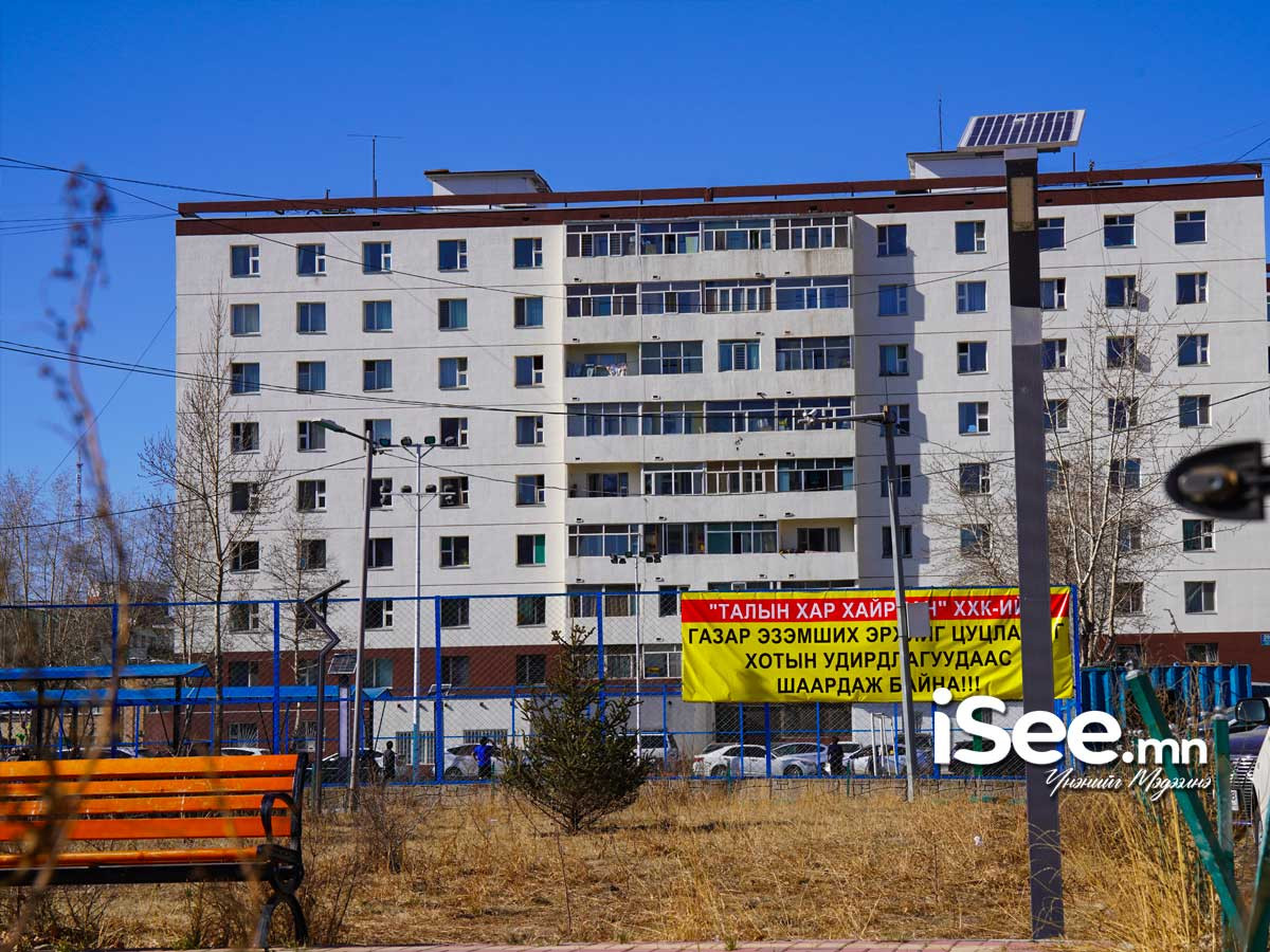 Сүхбаатар дүүргийн 5-р хороо, Нарны замын 13/2-р байрны ногоон байгууламж дээр барилга барих асуудал оршин суугчдын эсэргүүцэлтэй тулгараад байна. Тус байршлын 414 м.кв ногоон байгууламж, мөн автомашины зориулалтаар ашиглагдаж байсан 395 м.кв газрыг “Талын хар хайрхан” ХХК 2024 онд эзэмших эрхтэй болжээ. Газар эзэмших эрхээ анх нэгийг нь 5-8 давхар орон сууцны зориулалтаар, нөгөөг нь эмнэлгийн үйлчилгээний зориулалтаар авч байсан хэдий ч өдгөө энд 23 давхар үйлчилгээний талбайтай орон сууц барихаар болжээ.