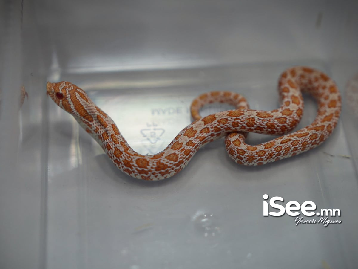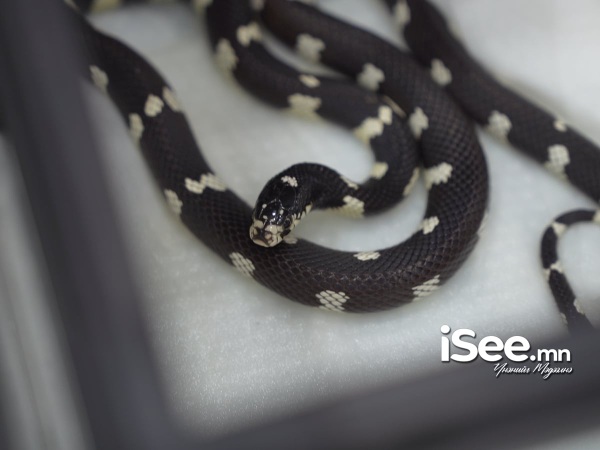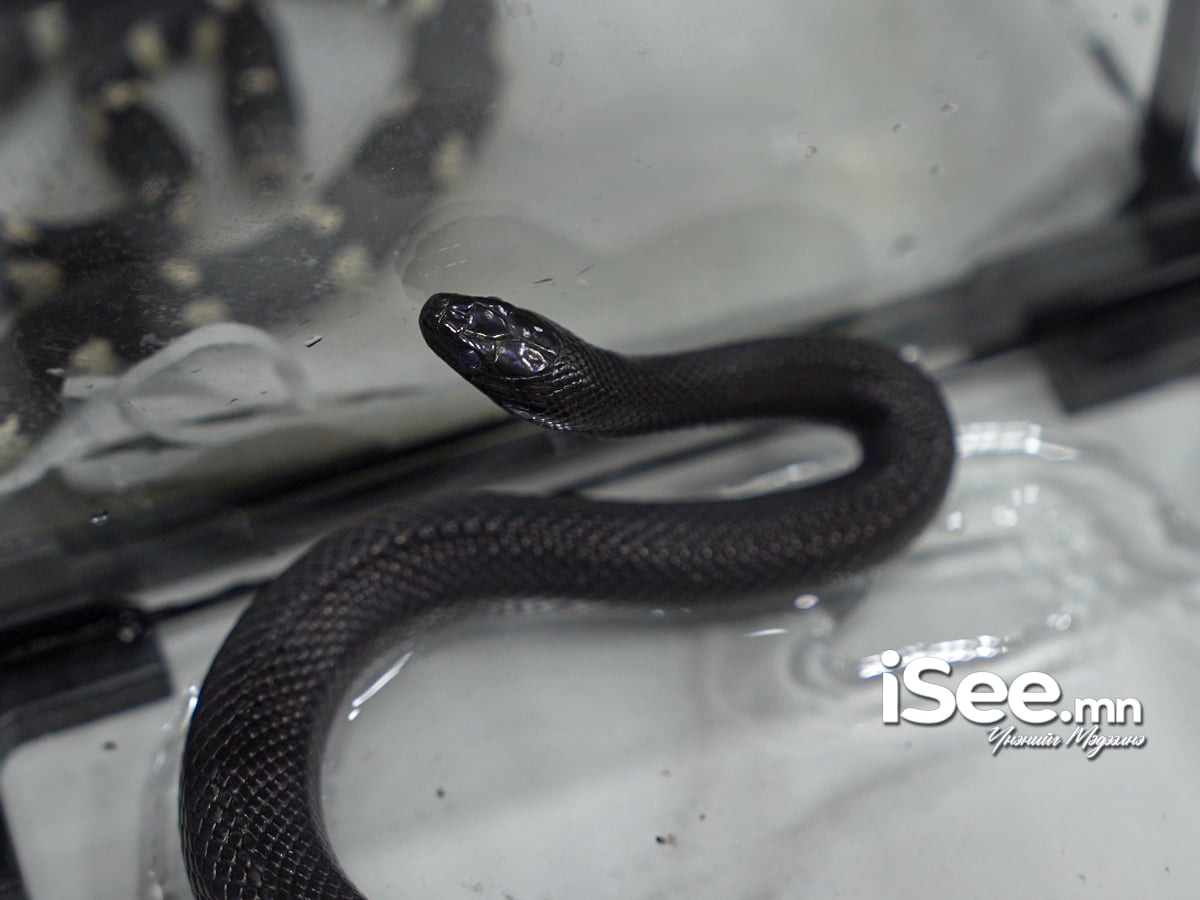 -Хамгийн жижиг хогнос гээд могой маань дөрвөн сартай. Энэ могой маань том болохоороо урт нь 50-60 см болдаг. Нэг их урт болдоггүй гэж болно. Харин хжуу талынх нь хар могой нь калифорниа кинг гэдэг могой. Уртаараа 1 метр, 30 см орчим болдог. Хортой могойгоо шууд идчихдэг. Байгаль дээрээ хаан могой гэж ярьдаг учраас мэрэгч амьтдыг бүгдийг нь идчихдэг. Түүний хажуу талынх нь мексикан блакинг могой. Энэ нь мөн л хорны эсрэг дархлаатай, 1.6 жилийн настай байгаа.