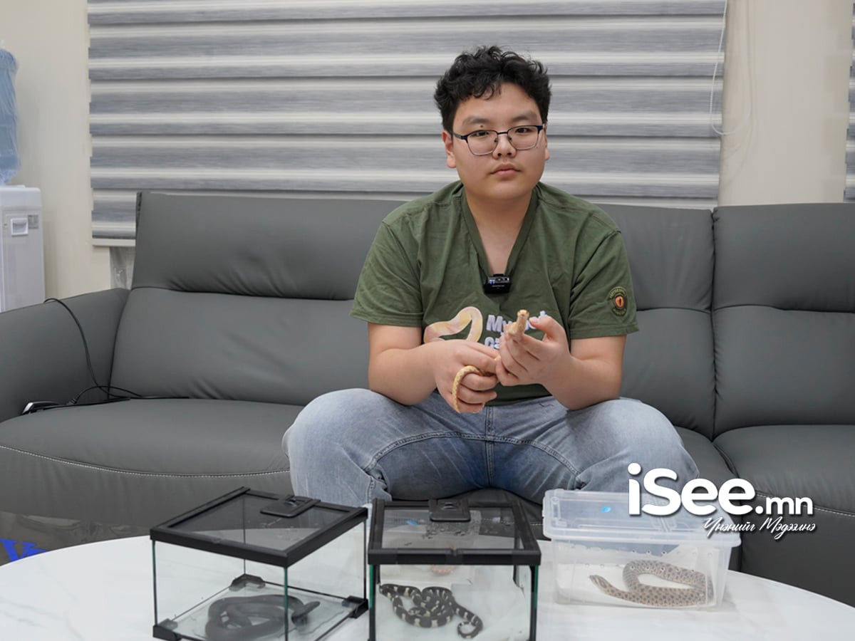 -Би ер нь хэвлээр явагч амьтан их сонирхдог. Хоёр жилийн өмнөөс л их сонирхож эхэлсэн дээ. Манай аав намайг бага байхад матар, загас, аалз зэрэг сонирхолтой амьтан тэжээдэг байсан. Тэгээд би том болоод жаахан юм ойлгодог болох үедээ хэвлээр явагч амьтан сонирхож эхэлсэн.