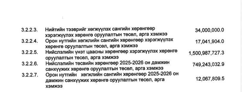 -НИЙСЛЭЛИЙН ТӨСВӨӨС БУЮУ НИЙТИЙН ТЭЭВРИЙГ ХӨГЖҮҮЛЭХ САНГААС 20 ТЭРБУМЫГ ГАРГАЖ, ТАКСИ ХУДАЛДАН АВНА-
